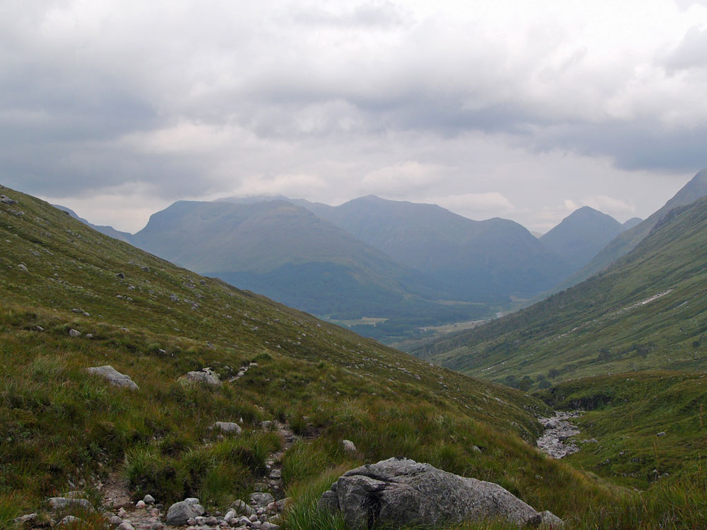 View north back across Glen Etive to Beinn Maol Chaluim and Stob Coire Sgreamhach