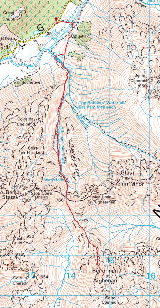 The route up: north ridge of Beinn nan Aighenan