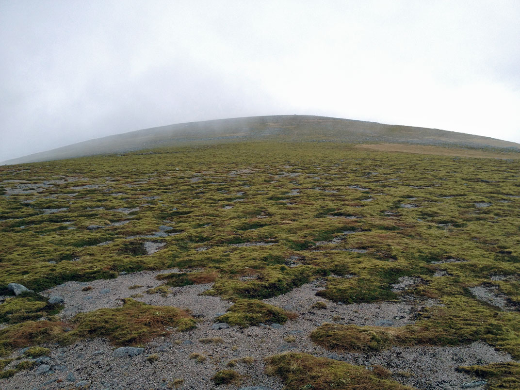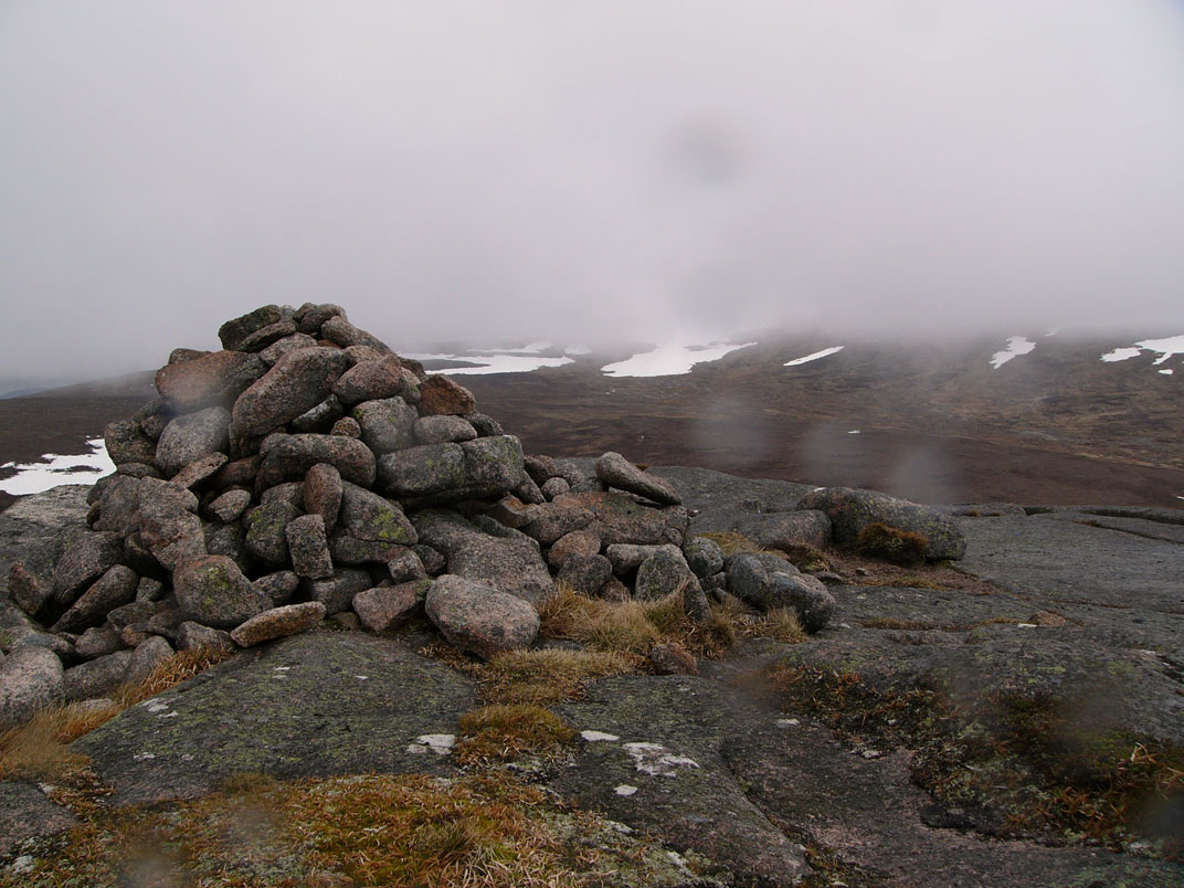 Monadh Mòr summit with Cairn Toul behind (in cloud) and the Devil’s Penis low to the right (also in cloud)