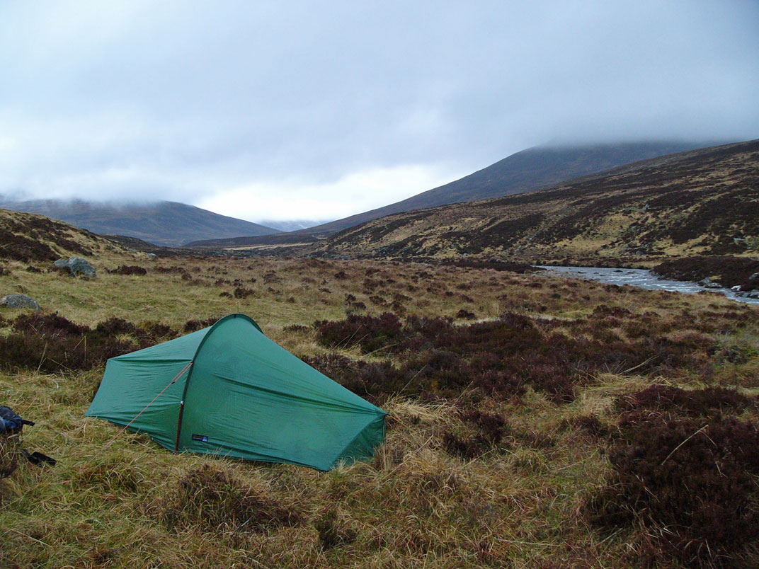 View back up Glen Dee to Ben Macdui (in cloud) and Carn a’ Mhaim