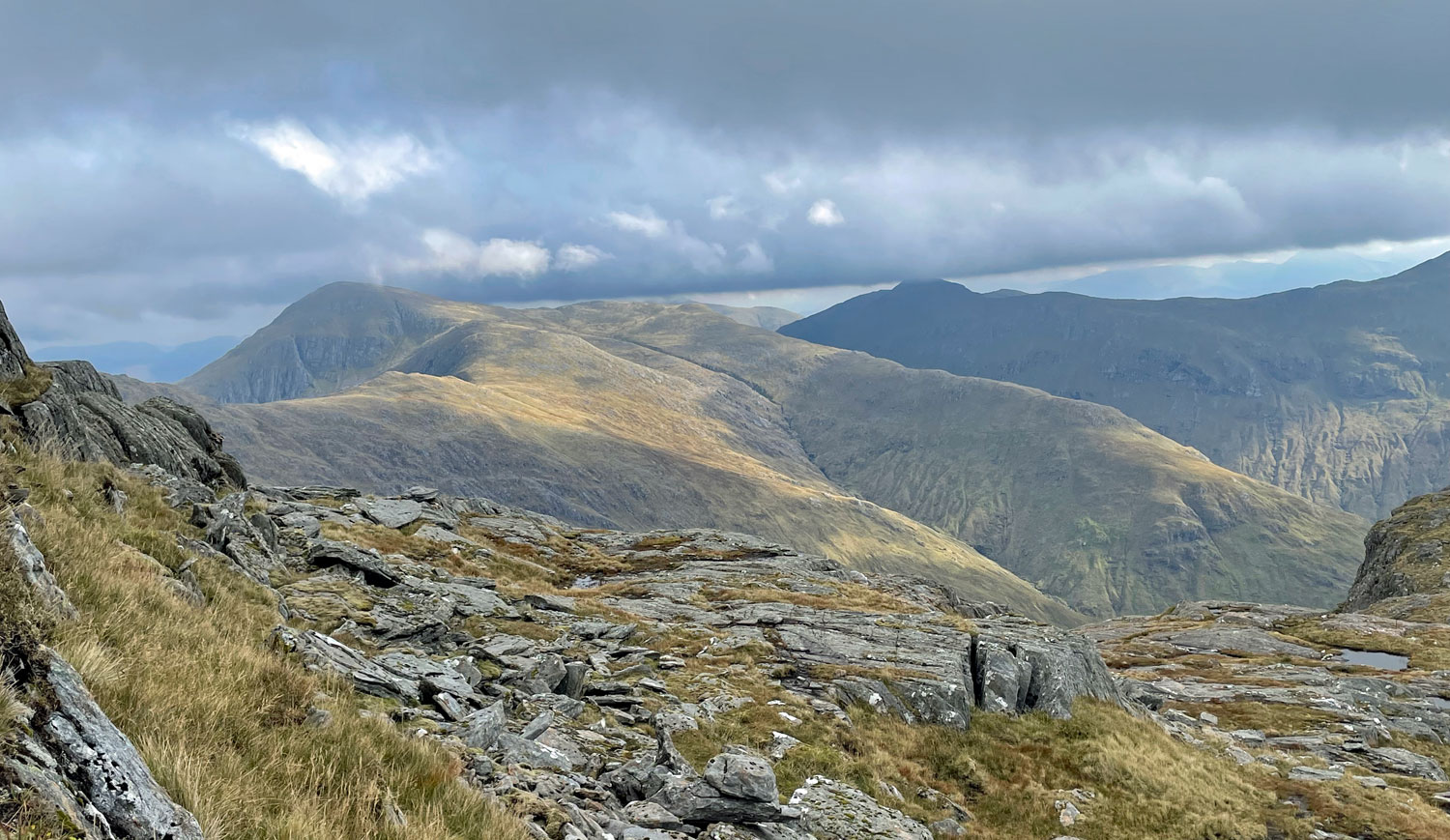 Meall an Tàrmachain and Beinn Gharbh are the two bumps on the ridge just below the cloud
