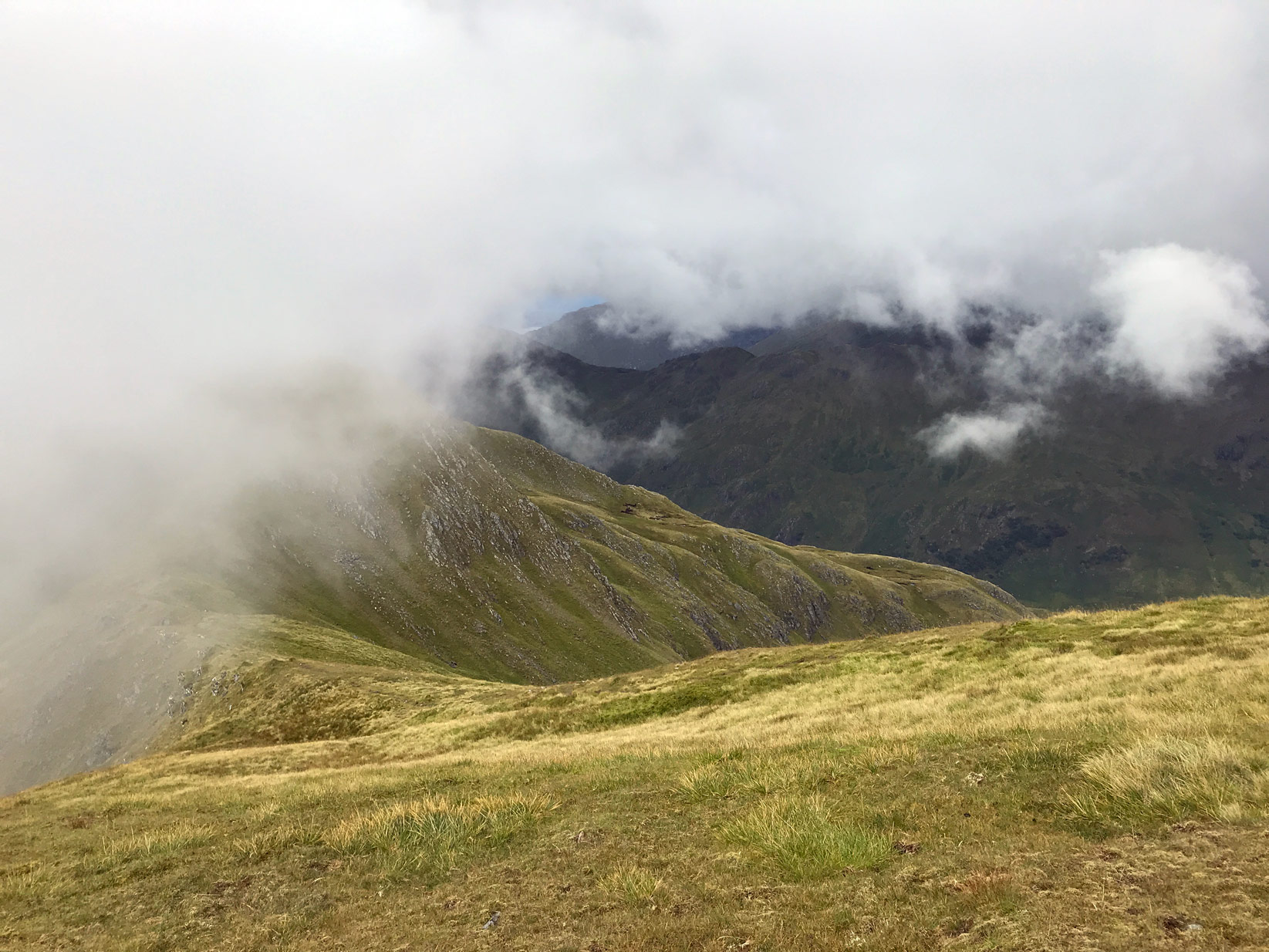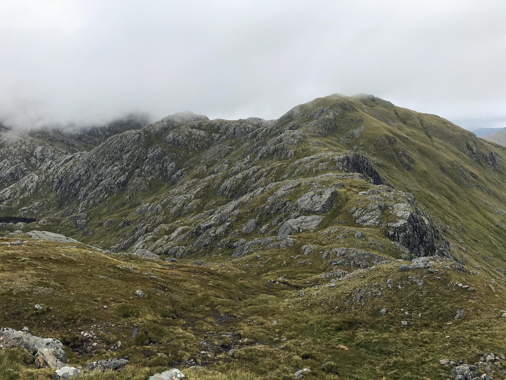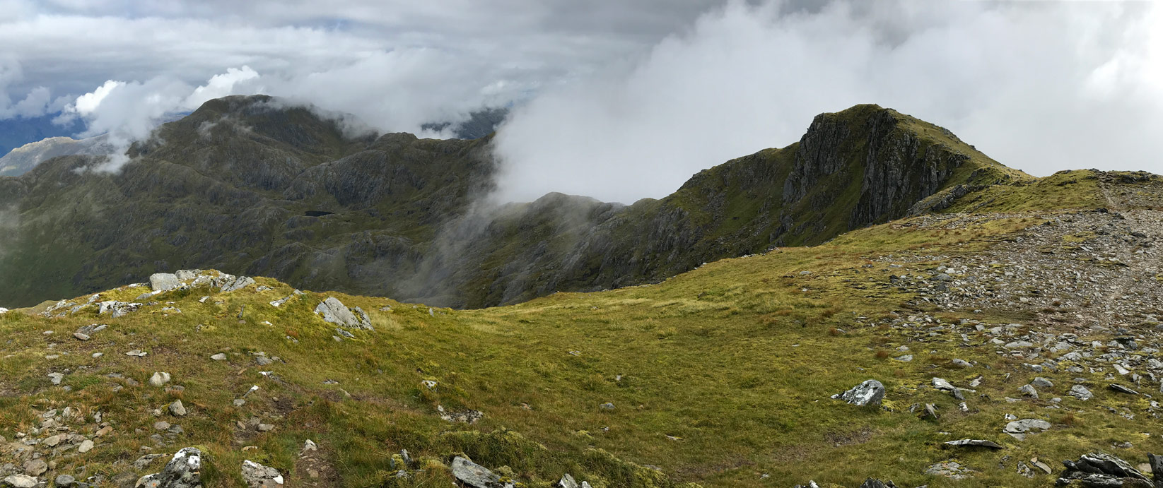 Approaching Luinne Bheinn summit with Bealach a’ Choire Odhair on the right
