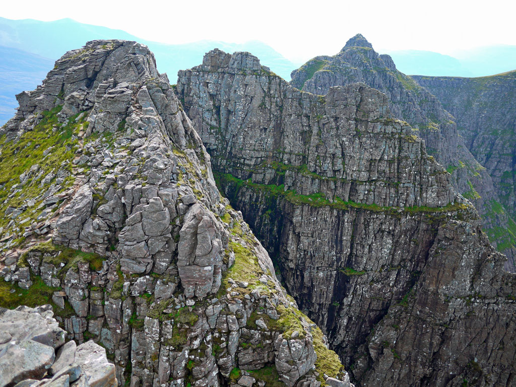 Looking back east over Coireag Cham to Beinn Eighe, Spidean a’ Choire Lèith and the Am Fasarinen Pinnacles
