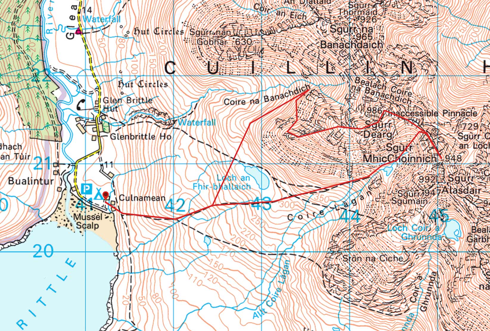 Sgurr Mhic Choinnich, Sgurr Thearlaich, Sgurr Alasdair and Sgurr Sgumain from Sgurr Dearg