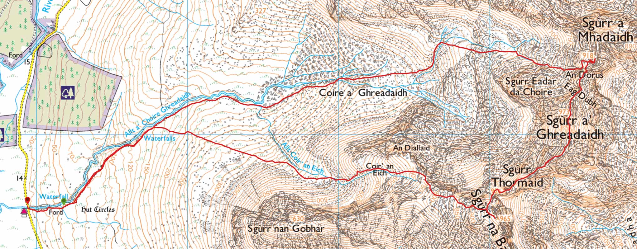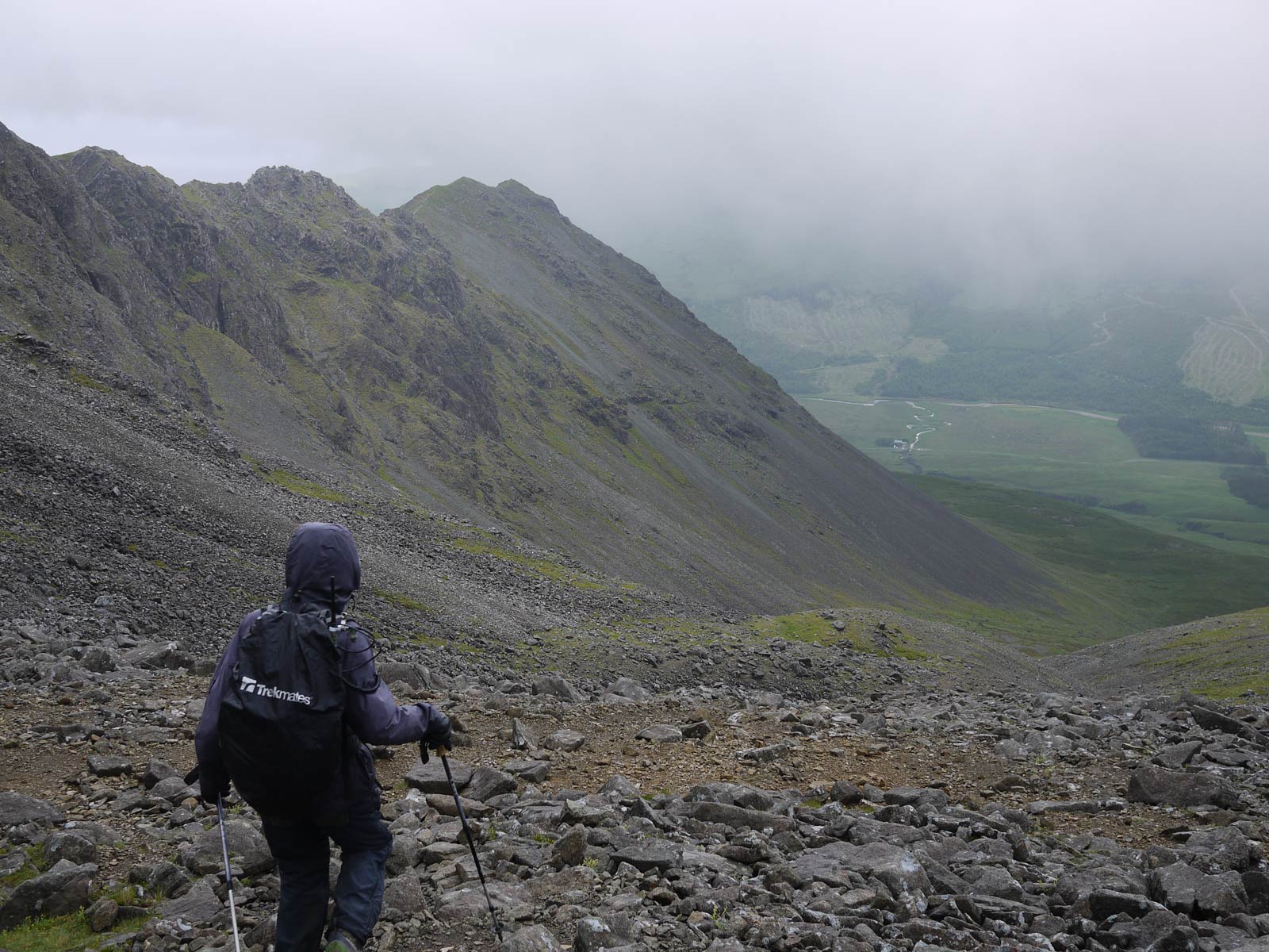 Approaching Sgurr a’ Mhadaidh below An Dorus gap