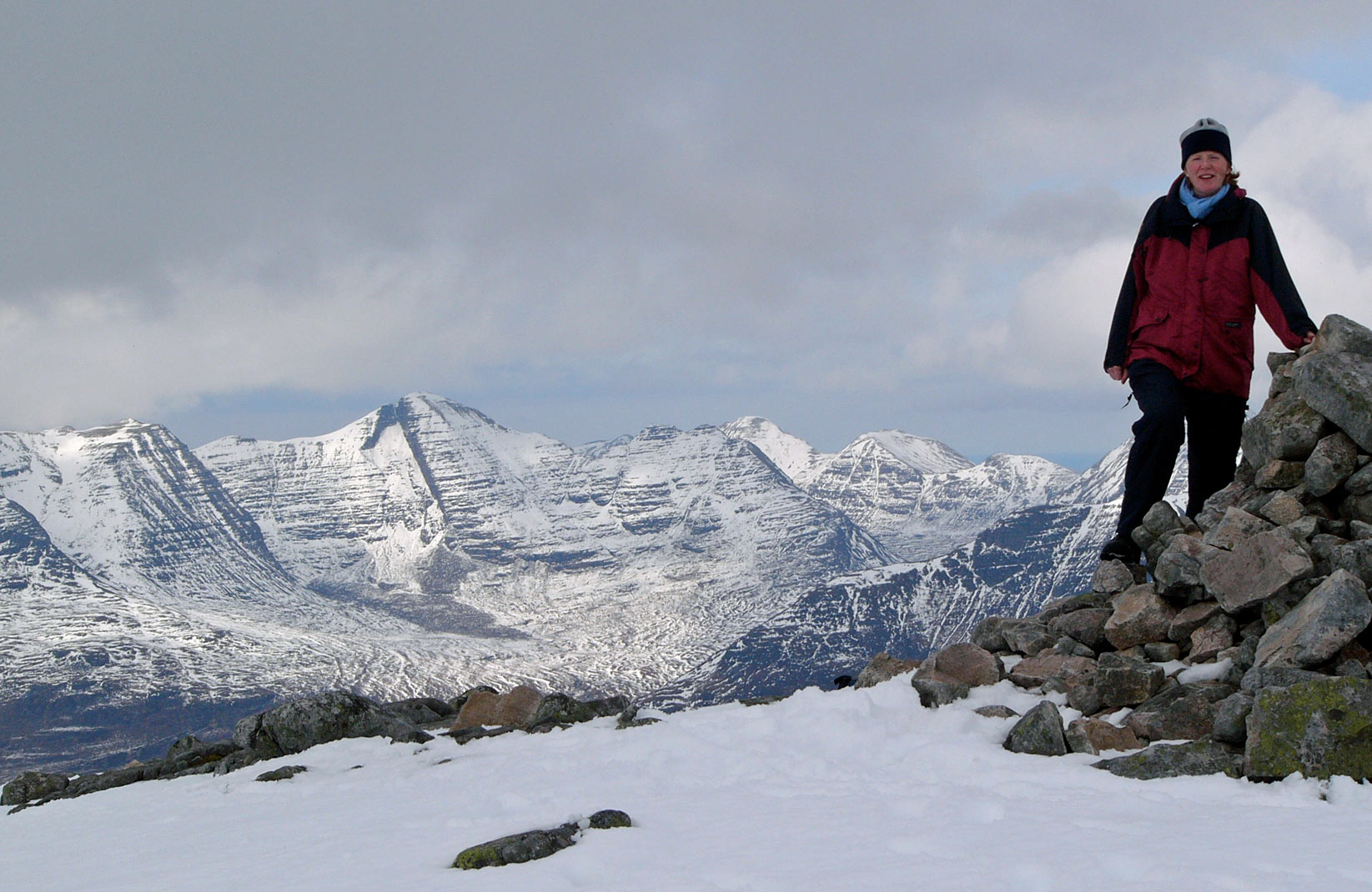 Summit cairn with Maol Chean-dearg and An Ruadh-Stac behind