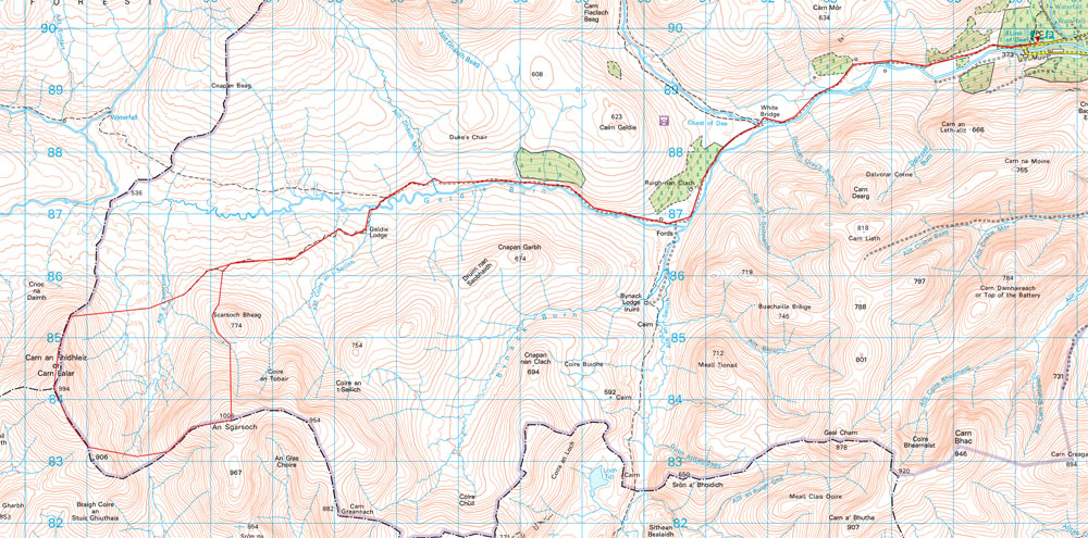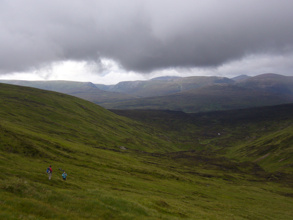 View of Einich Cairn, Monadh Mòr, Cairn Toul and Beinn Bhrotain