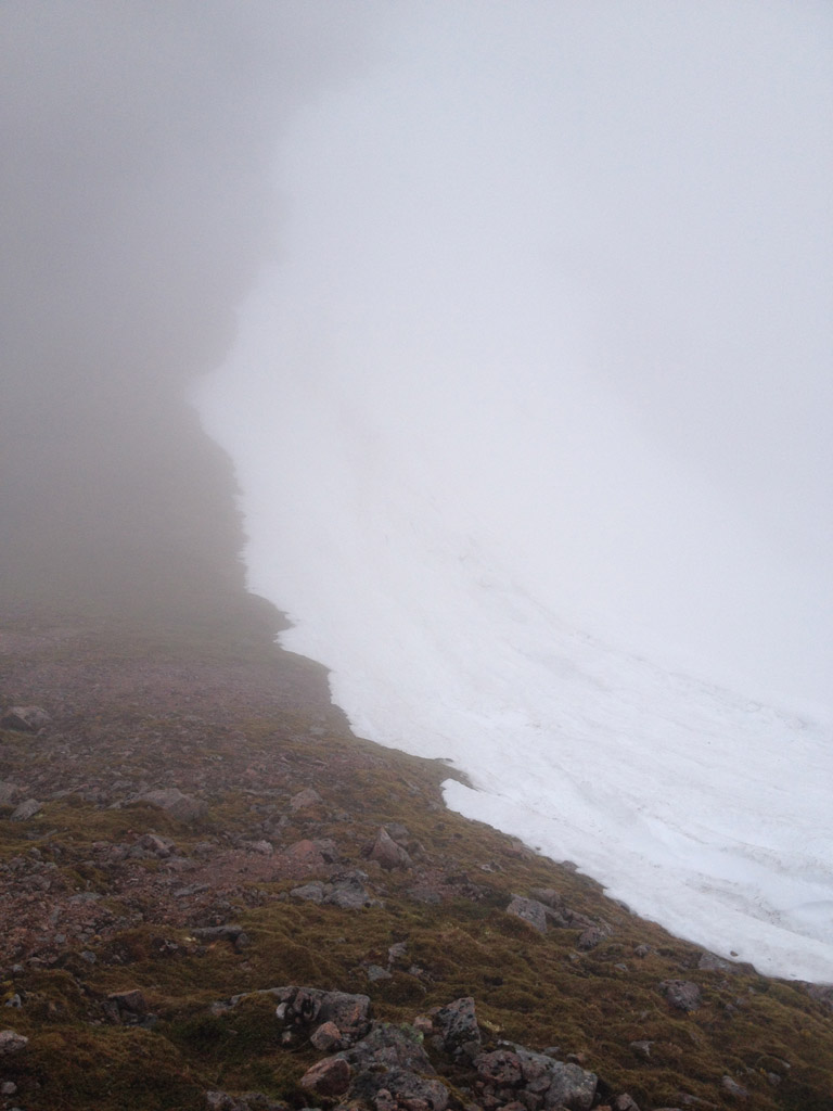 Cornice (about 10-20 m wide) above Coire Cath nam Fionn at the bealach on the way to Monadh Mòr