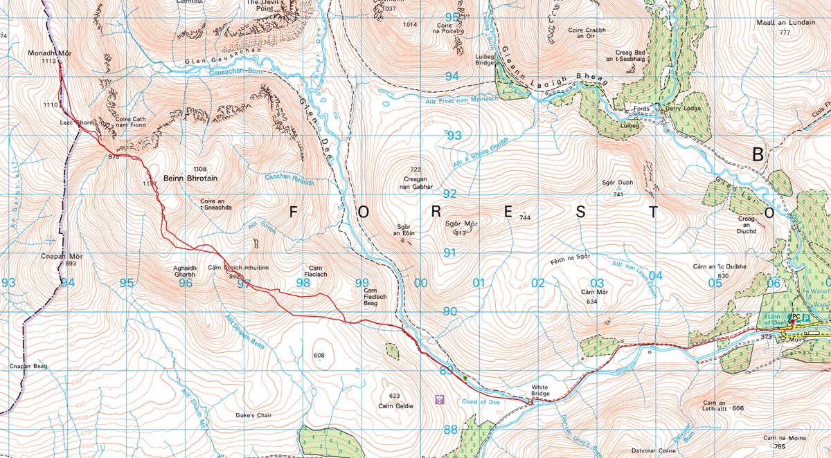 View up Glen Dee past the shoulder of Beinn Bhrotain to The Devil’s Penis