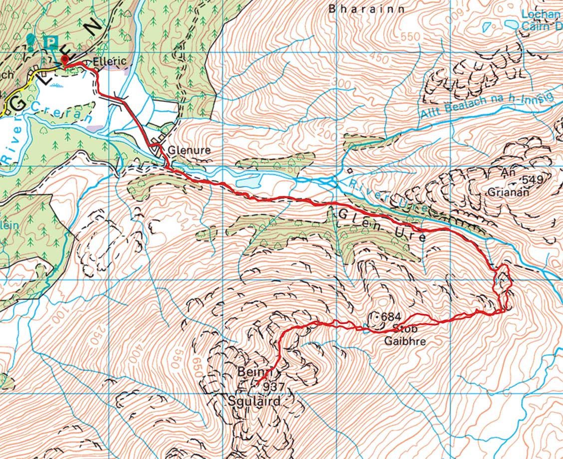 View up Glen Ure to An Grianan