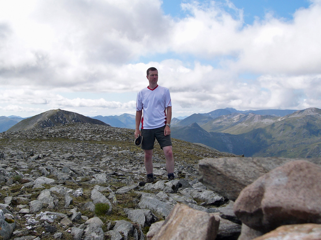 Stob Coire Easain with Glen Coe, Mamores, Ben Nevis, Aonach Beag and Grey Corries as background.