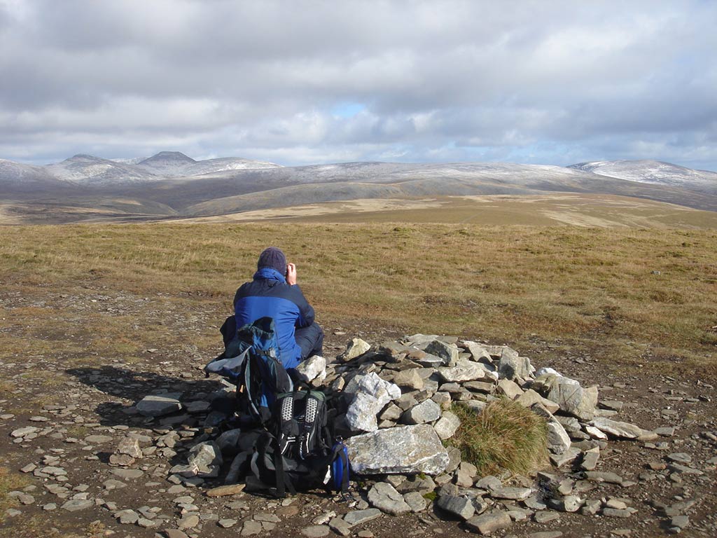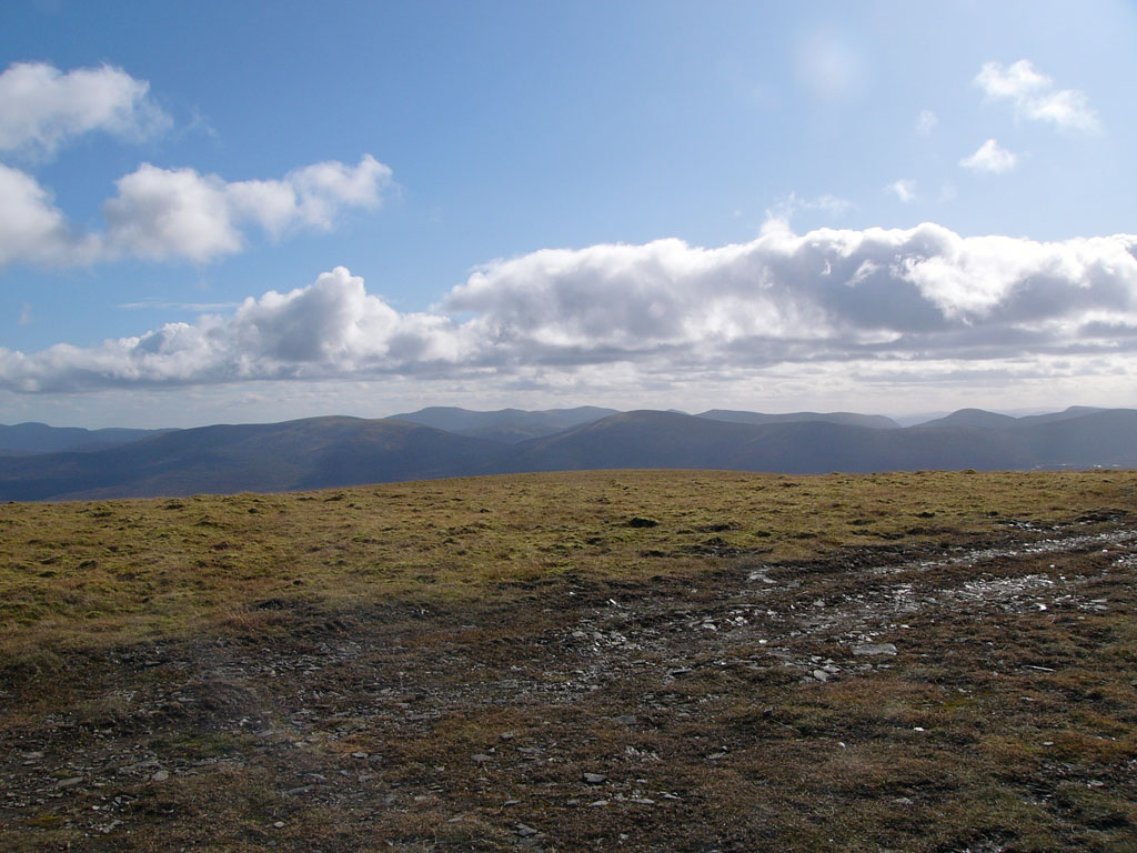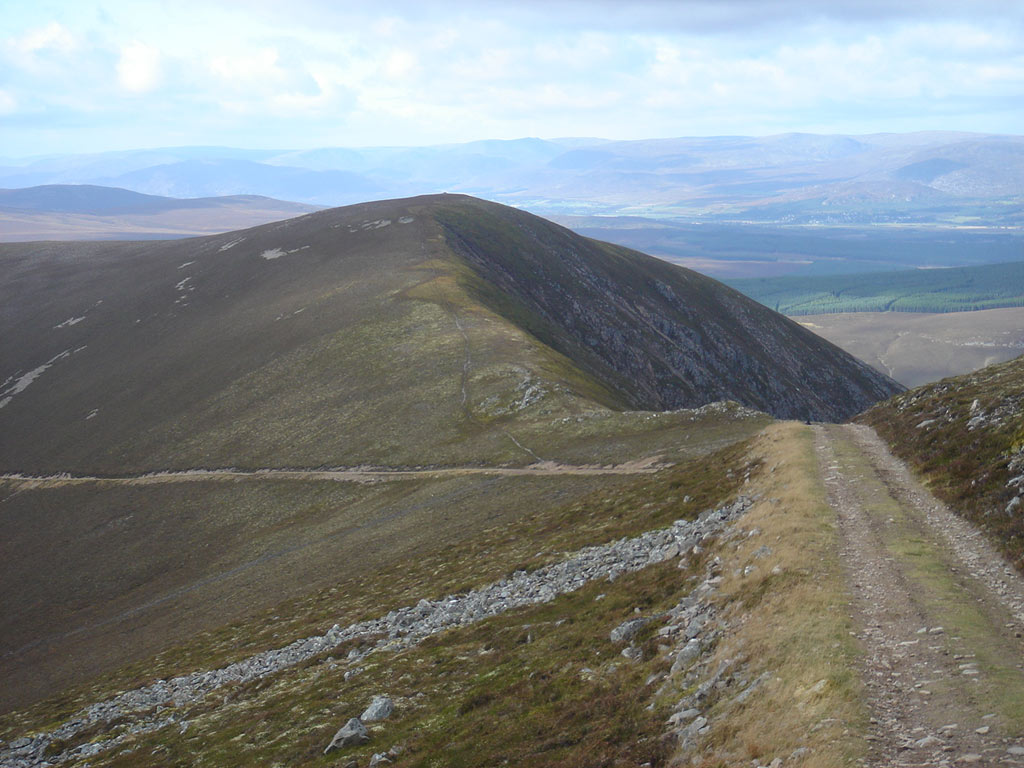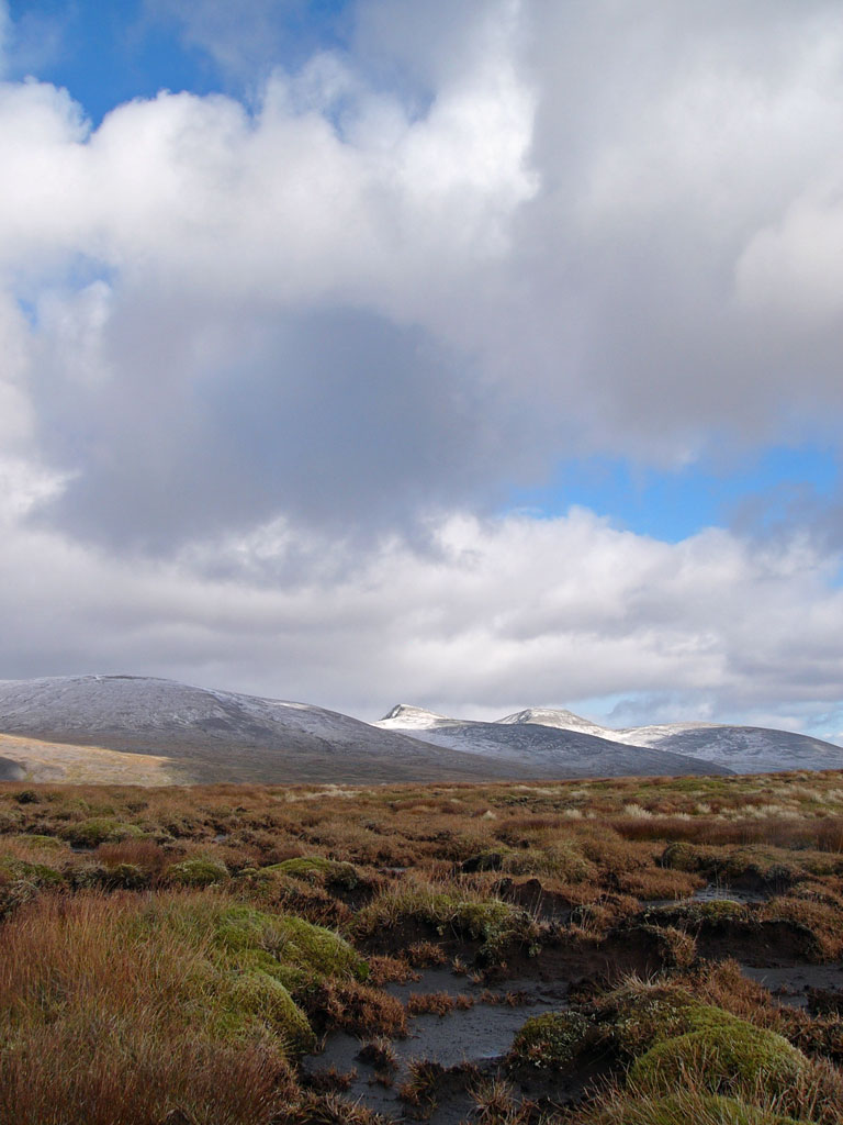 View south to An Sgarsoch and Carn an Fhidhleir with Beinn a’ Ghlo in the distance
