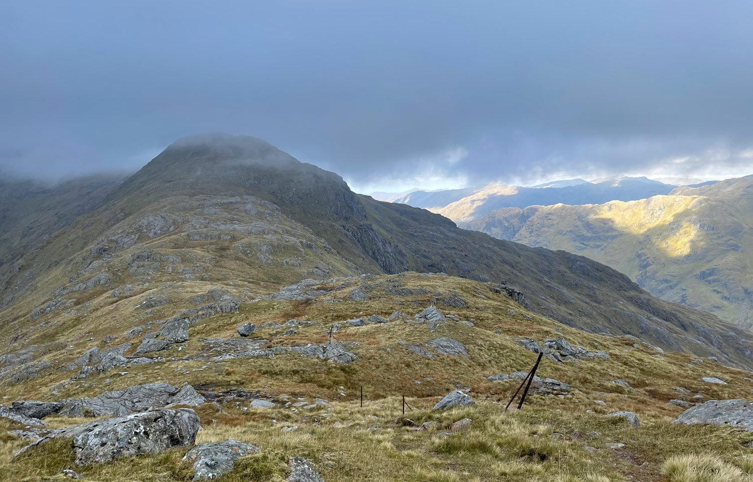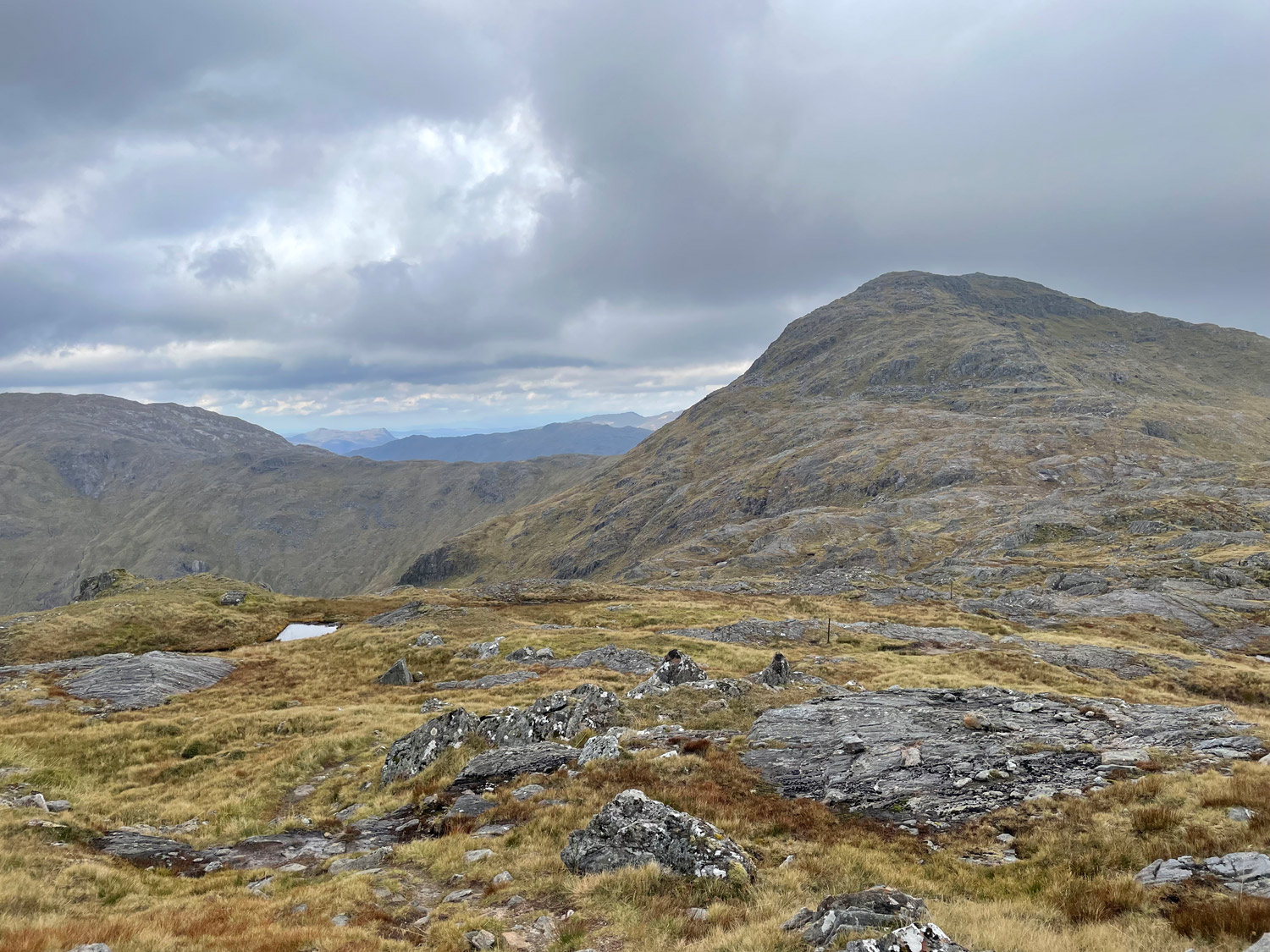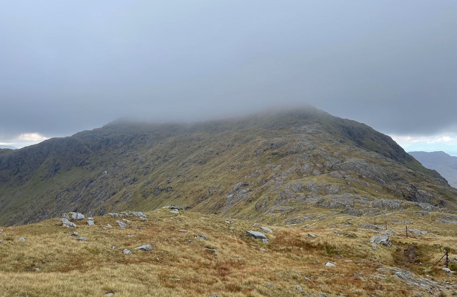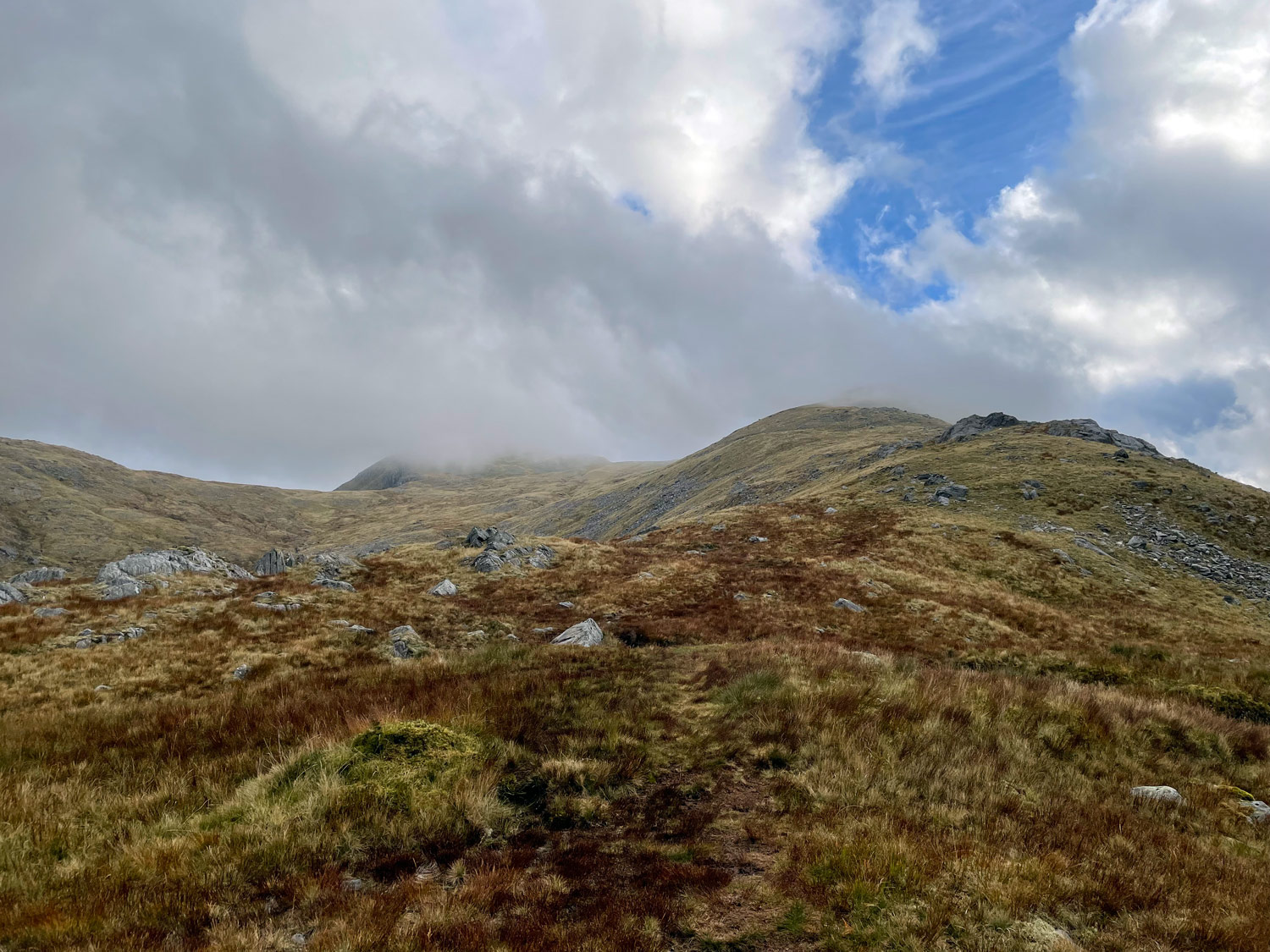 Meall an Tàrmachain and Beinn Gharbh are the two bumps on the ridge just below the cloud