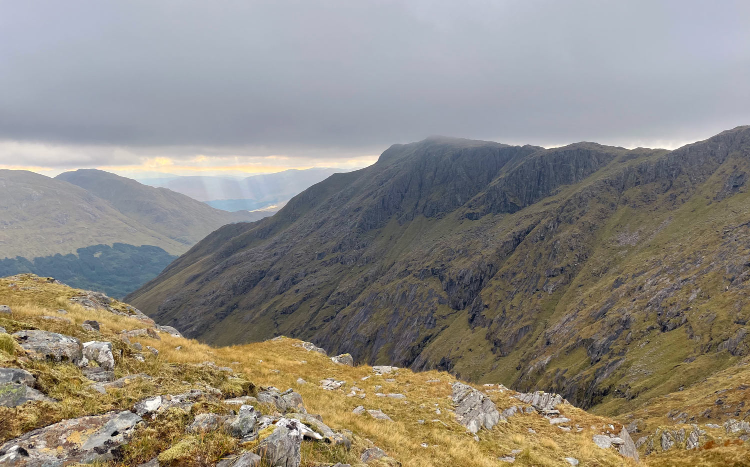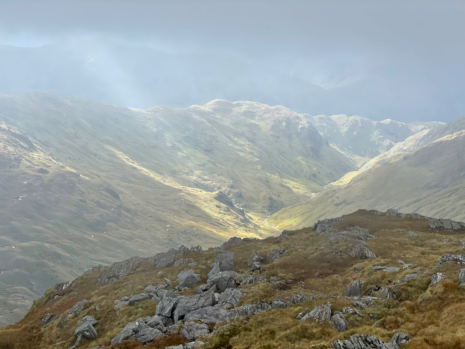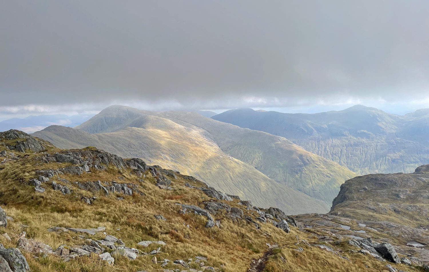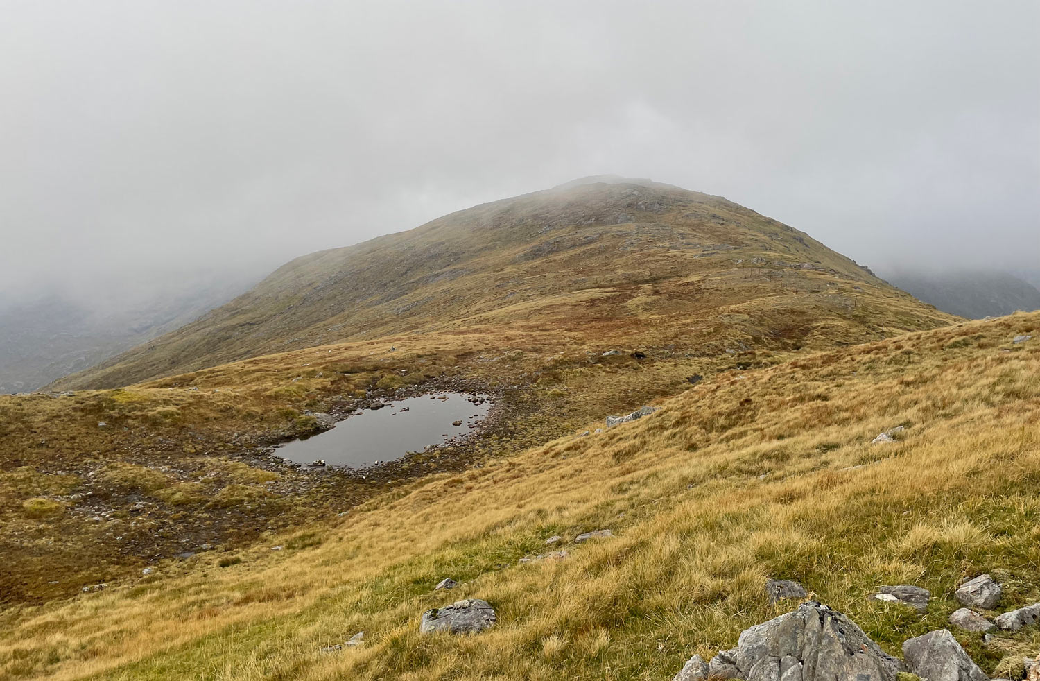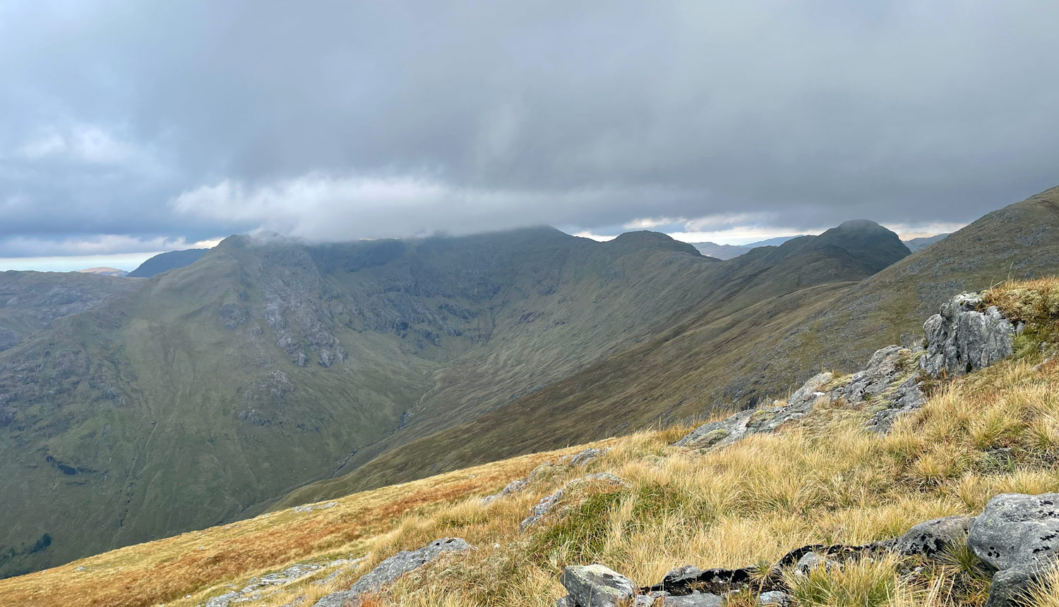 Looking across to Sgùrr a’ Choire Riabhaich with Sgùrr nan Coireachan in the cloud