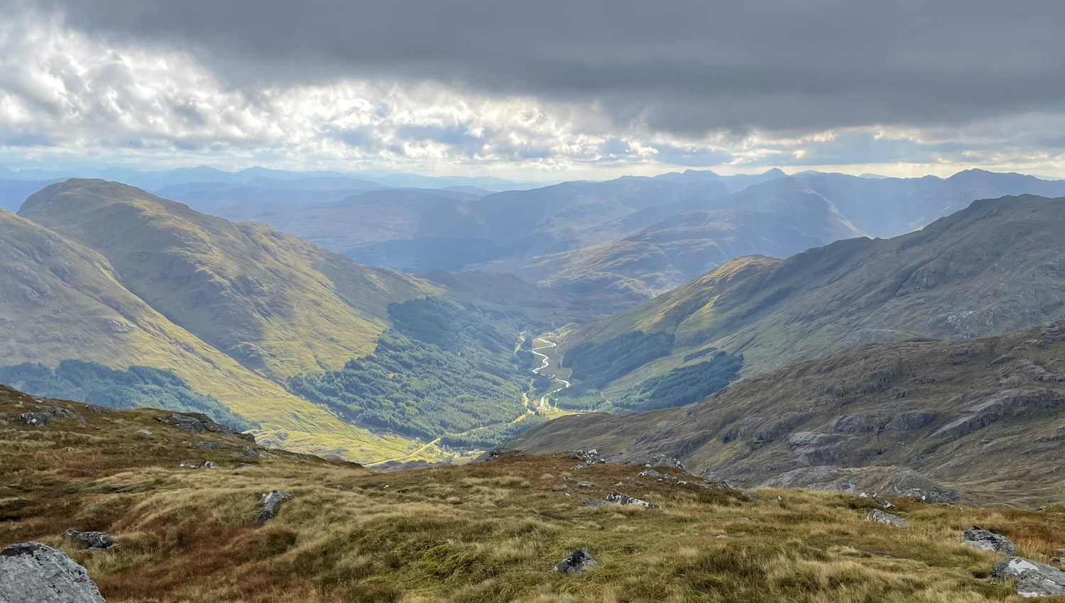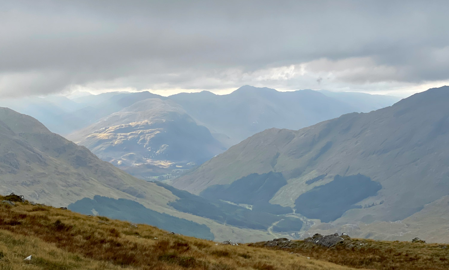 Looking back down Druim Coire a’ Bheithe with Glen Finnan behind