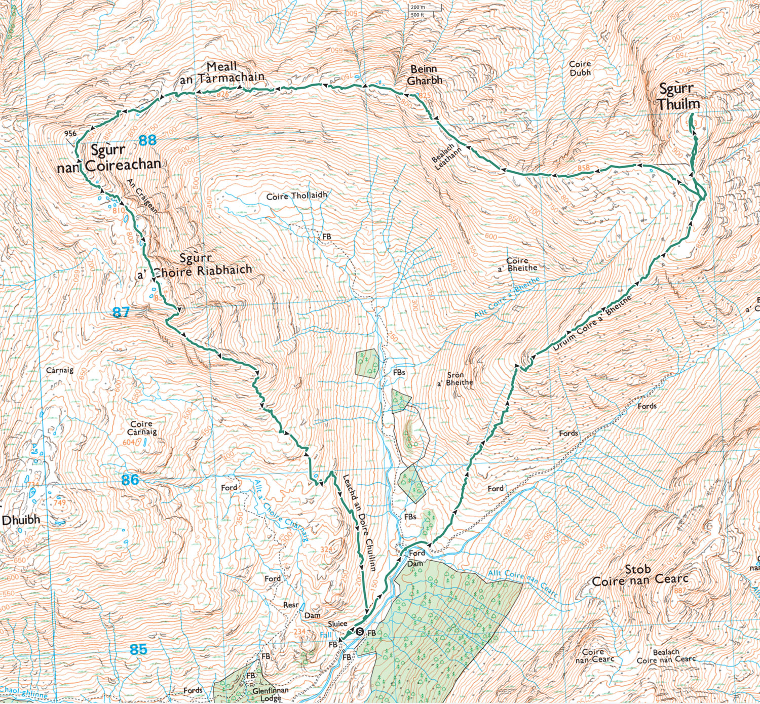 The full ridge between Sgùrr nan Coireachan and Sgùrr Thuilm