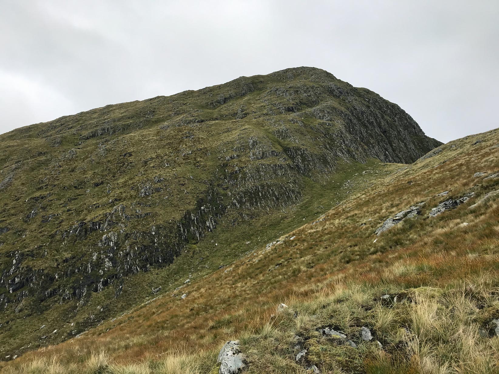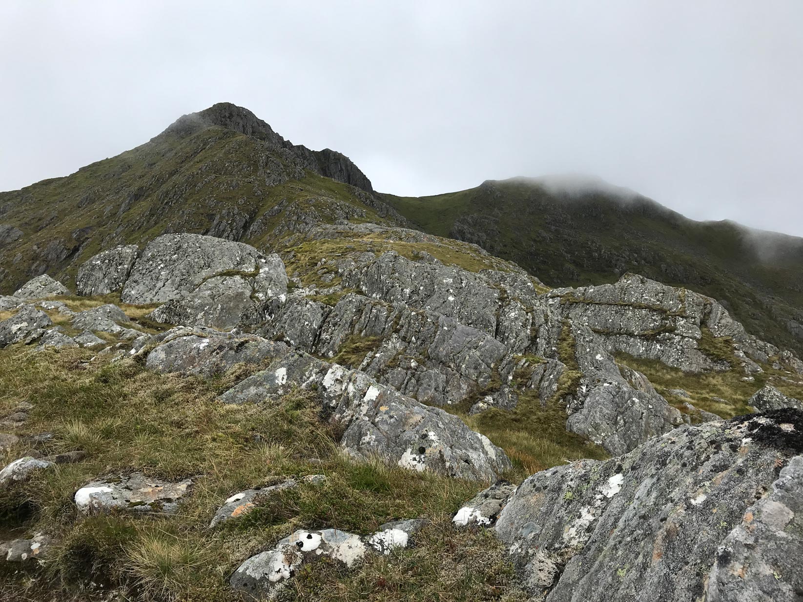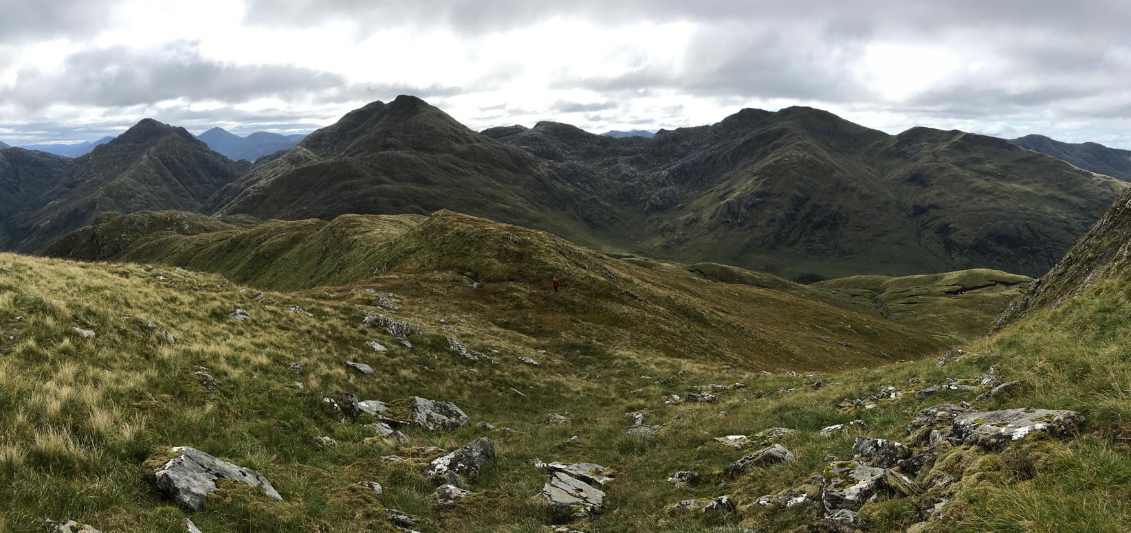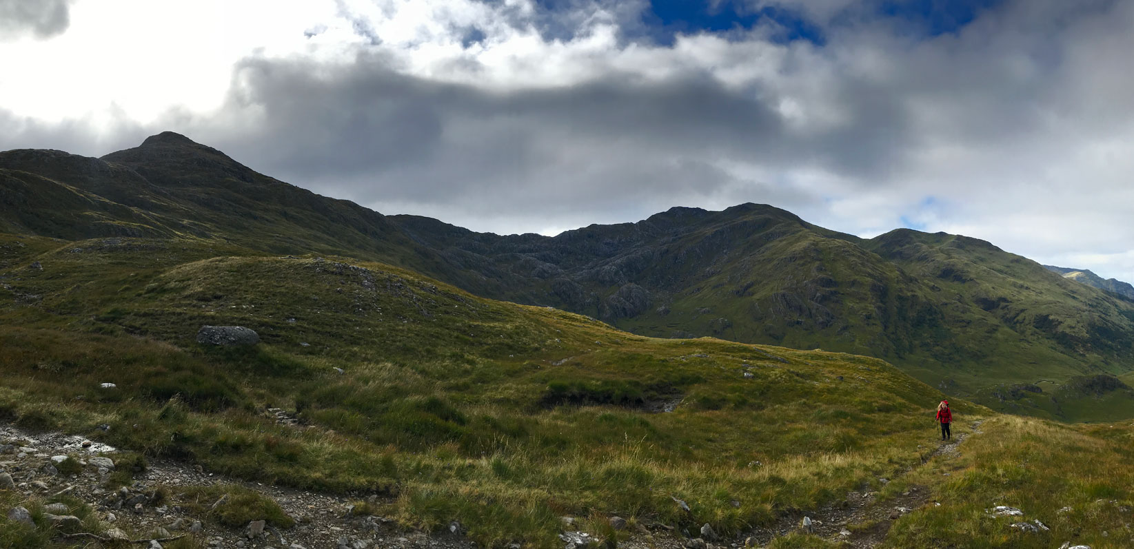 Approaching Luinne Bheinn summit with Bealach a’ Choire Odhair on the right