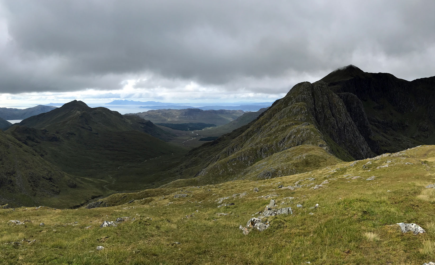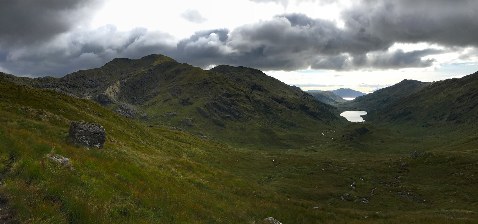 View down Gleann na Guiserein and back to Ladhar Bheinn
