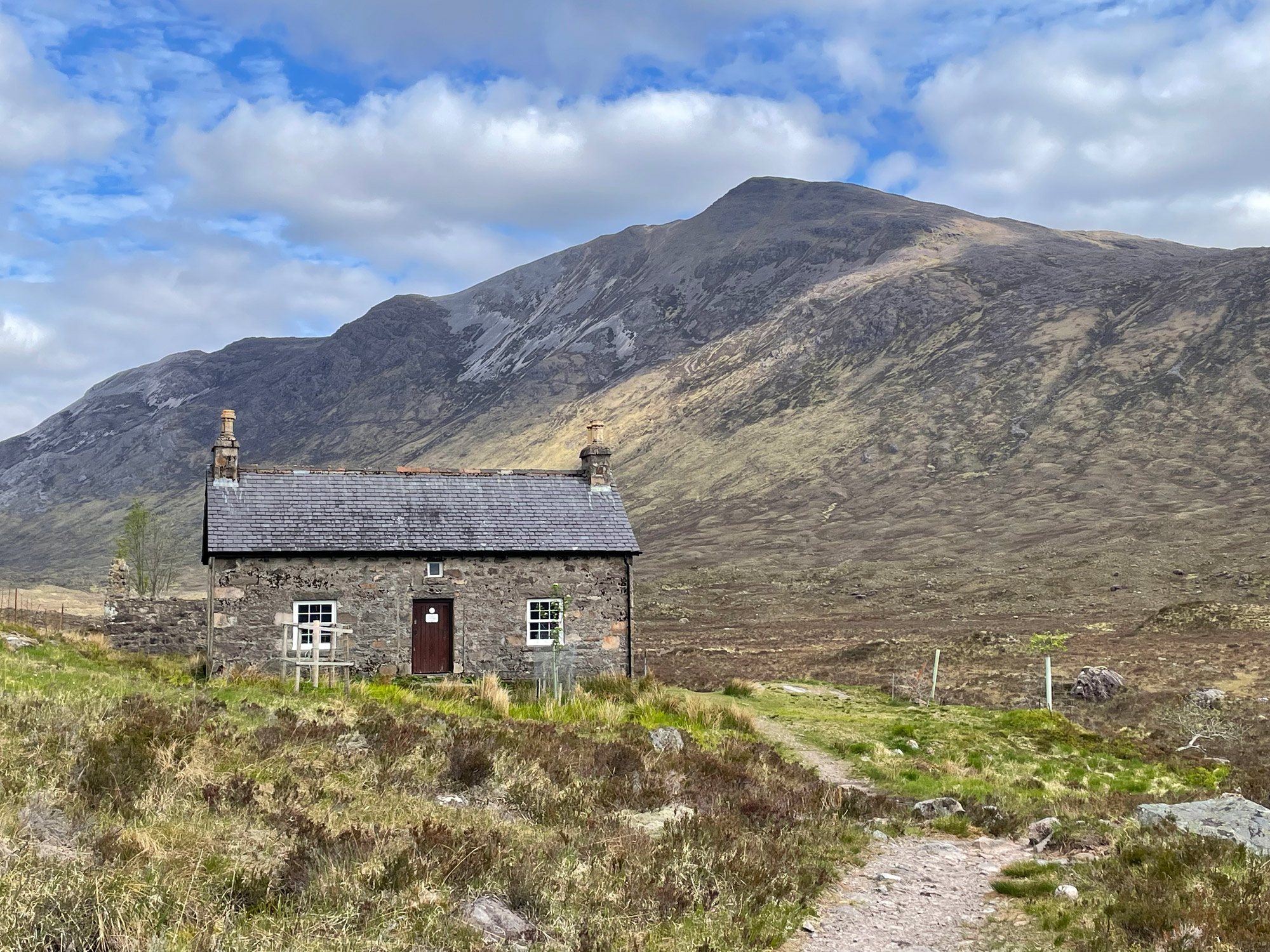 Coire Fionnaraich bothy with Sgorr Ruadh behind