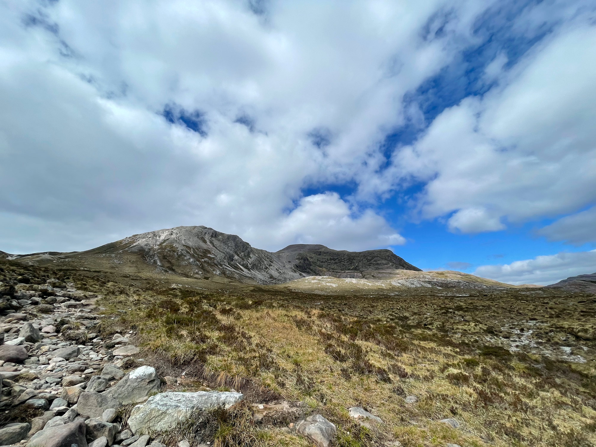 Walking in from Coulags with both An Ruadh-Stac and Maol Chean-dearg summits visible