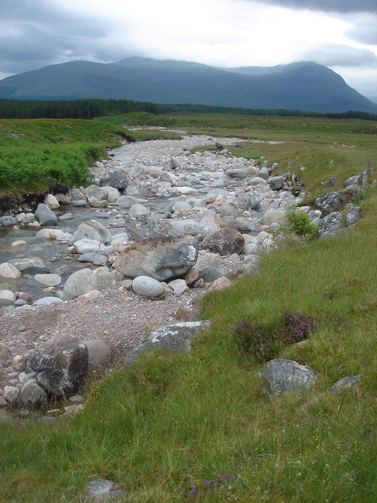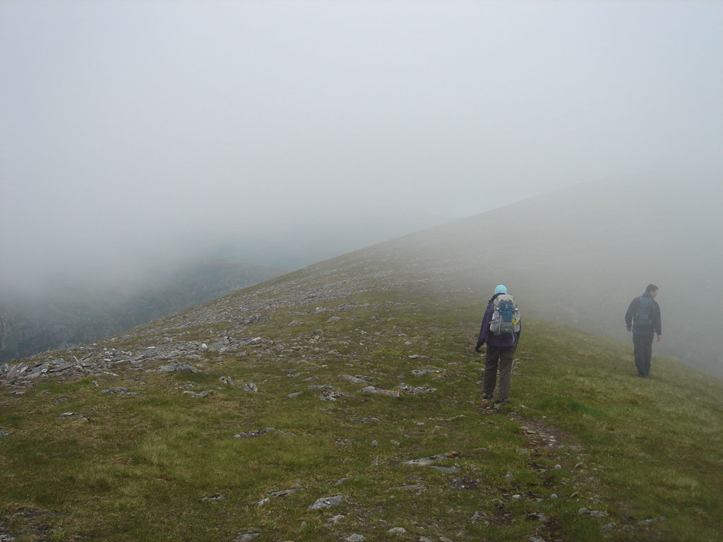 View to cloudy Stob Coire Sgriodain and Chno Dearg
