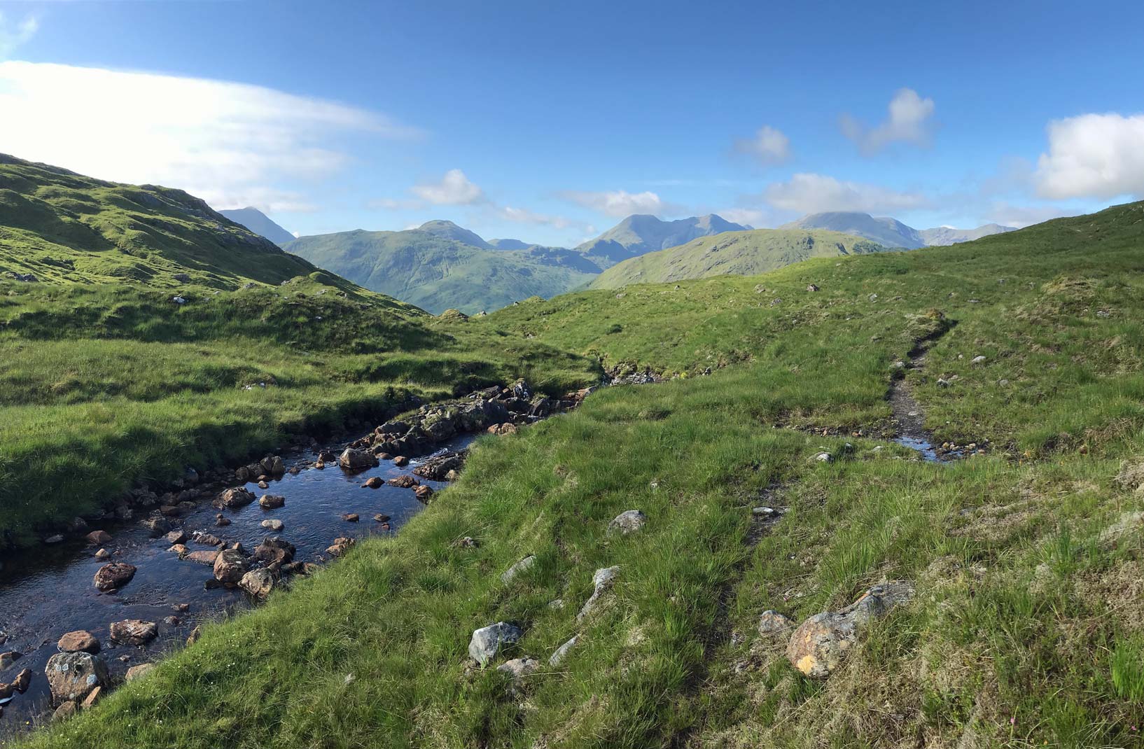 View south from the pass to Glen Finnan Munros