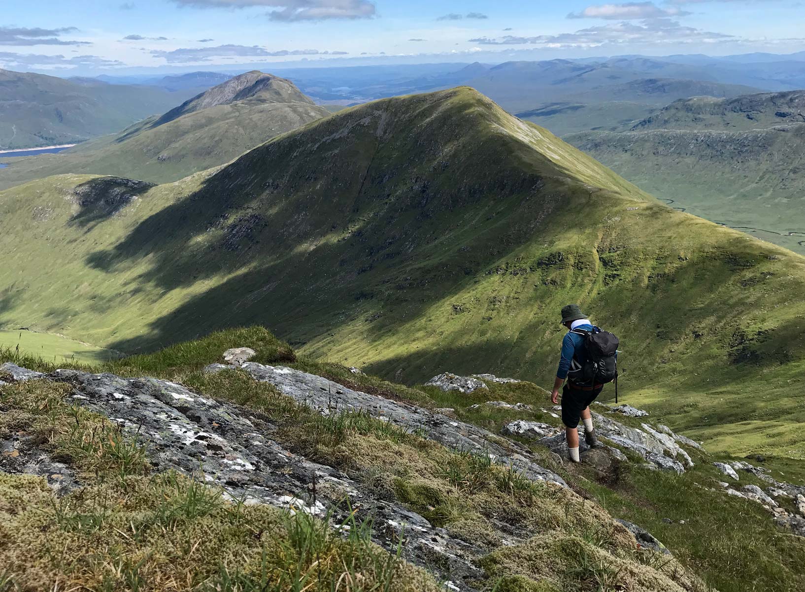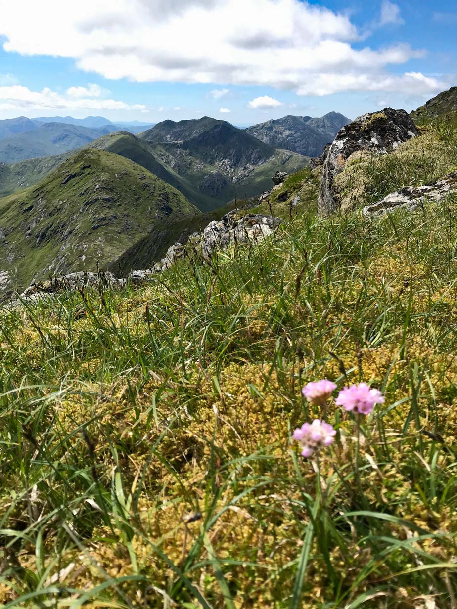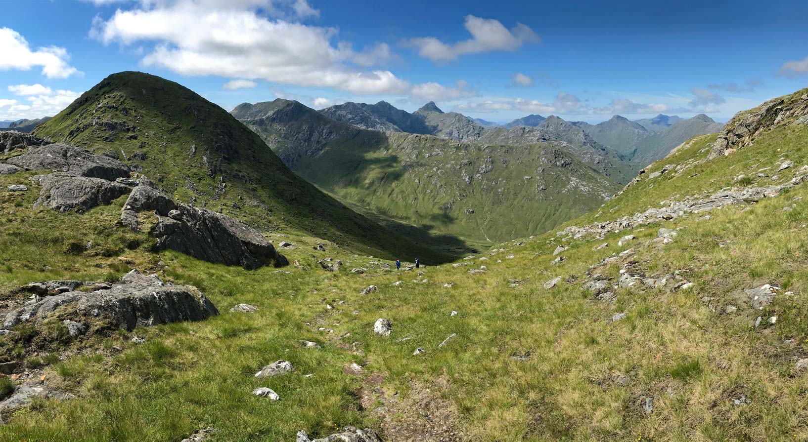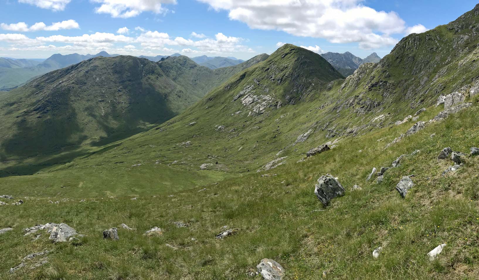 Descending towards Sgurr an Fhuarain with Gairich behind