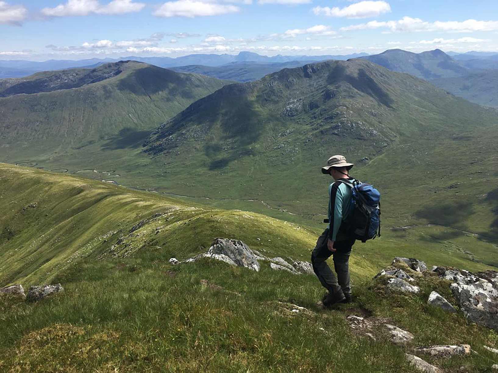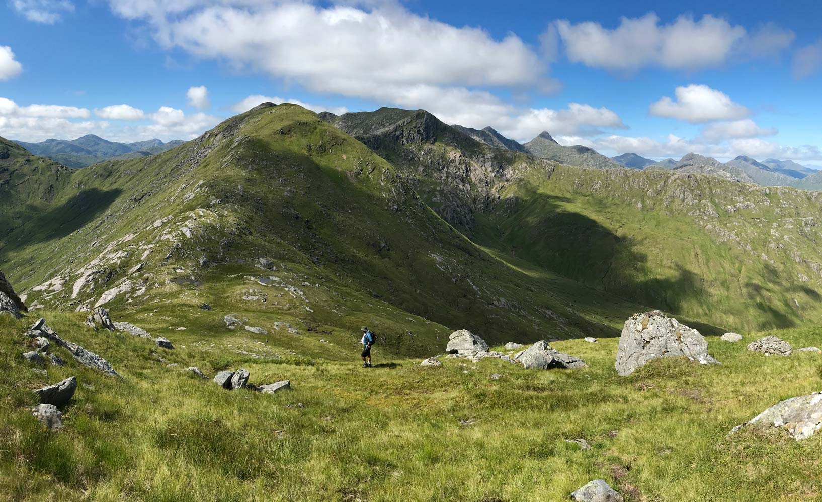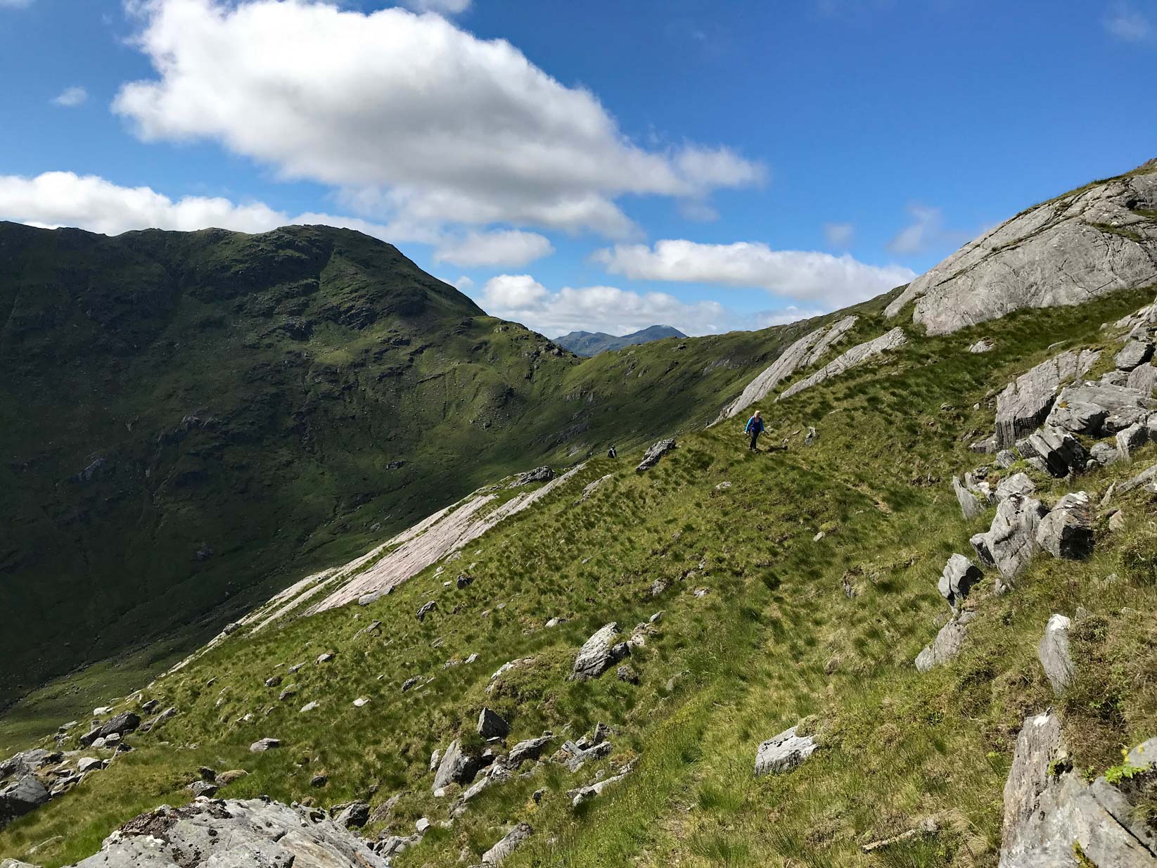 Descending towards Sgurr an Fhuarain with Gairich behind