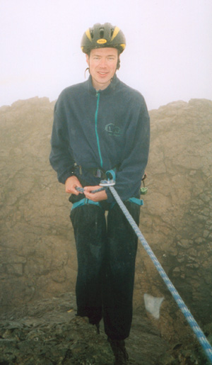 The first ascent/descent of the In Pinn in a cycle helmet?