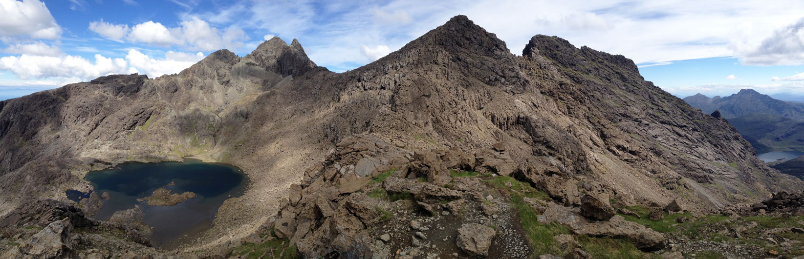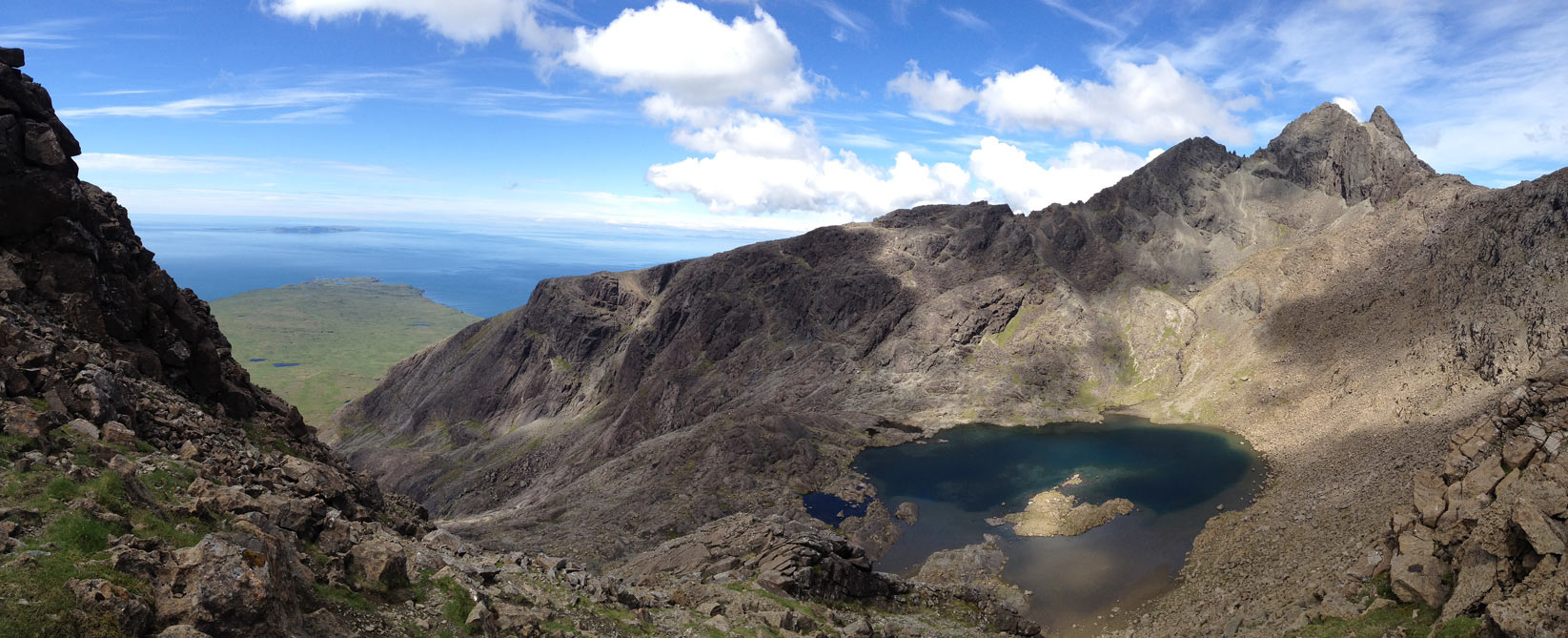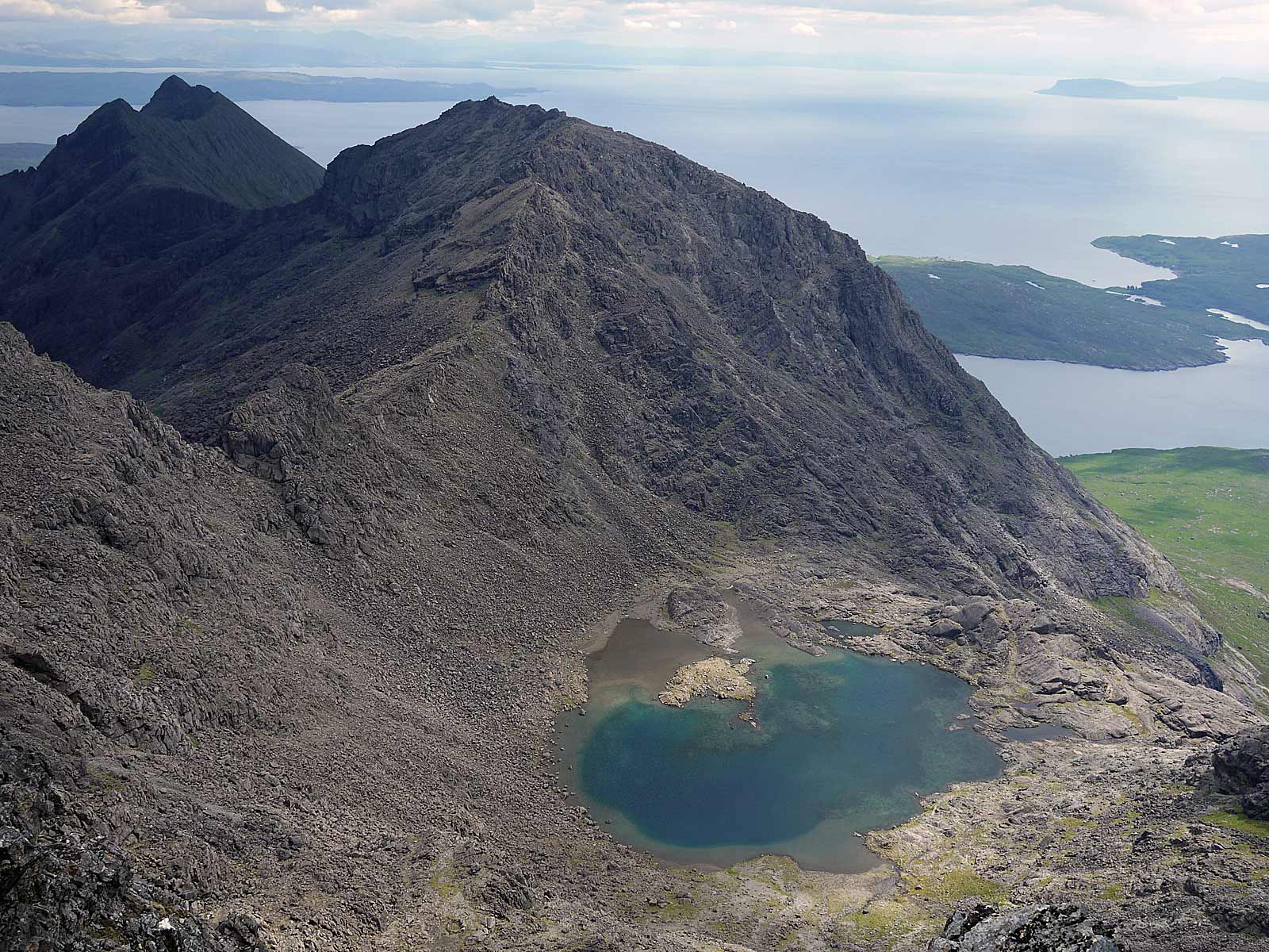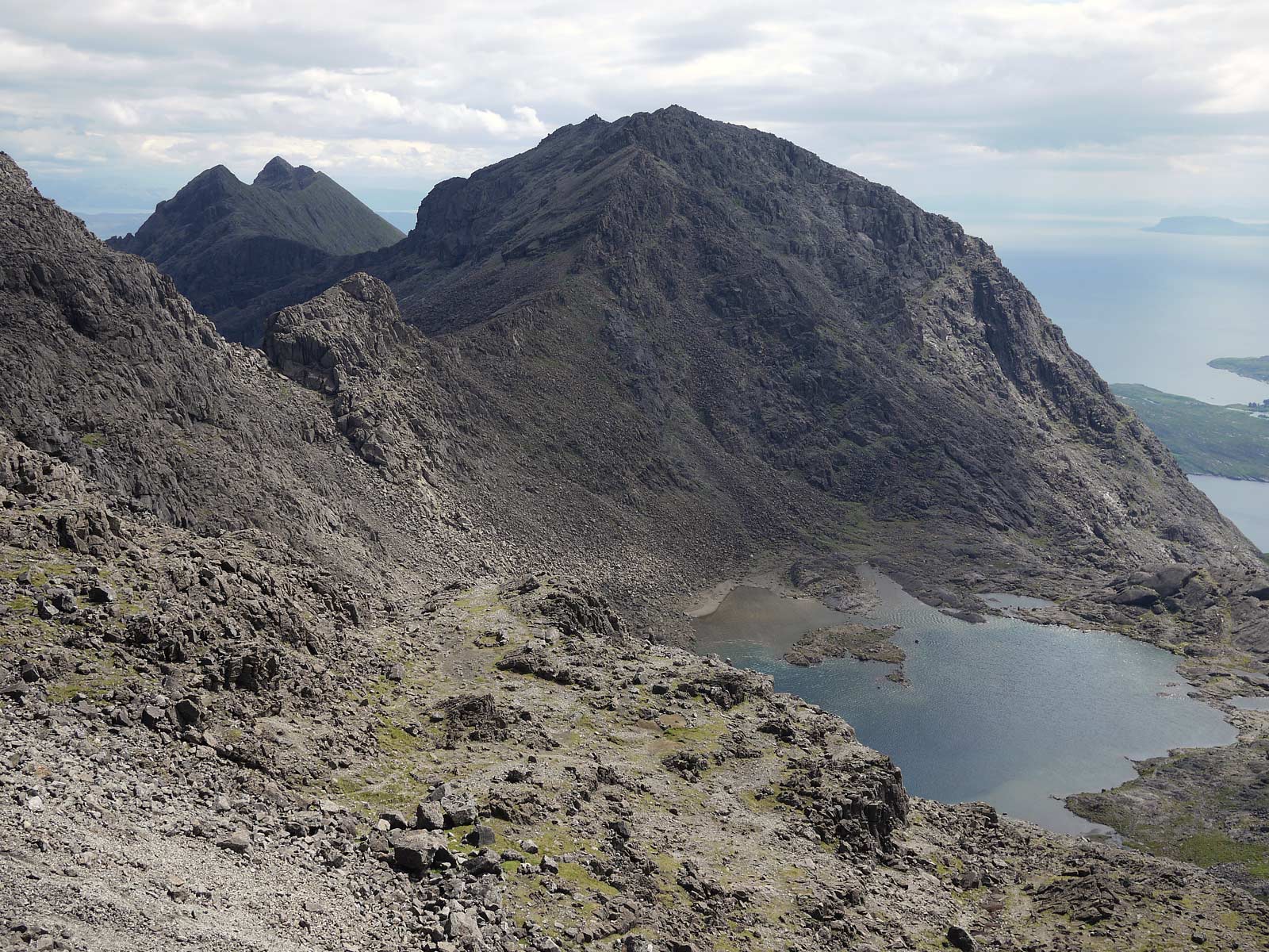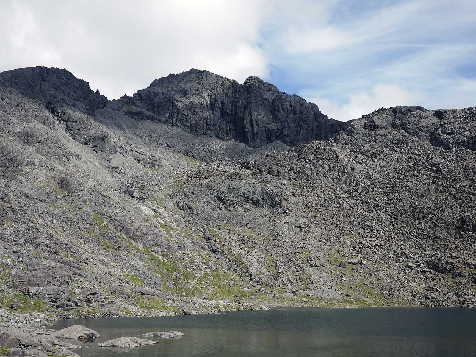 View over Loch Coruisk to Blà Bheinn, with Gars-bheinn along the main ridge to the right
