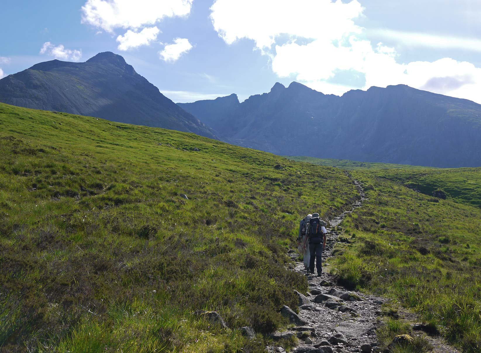 Ascending out of Glen Brittle with the day's main objective ahead: Sgùrr Alasdair