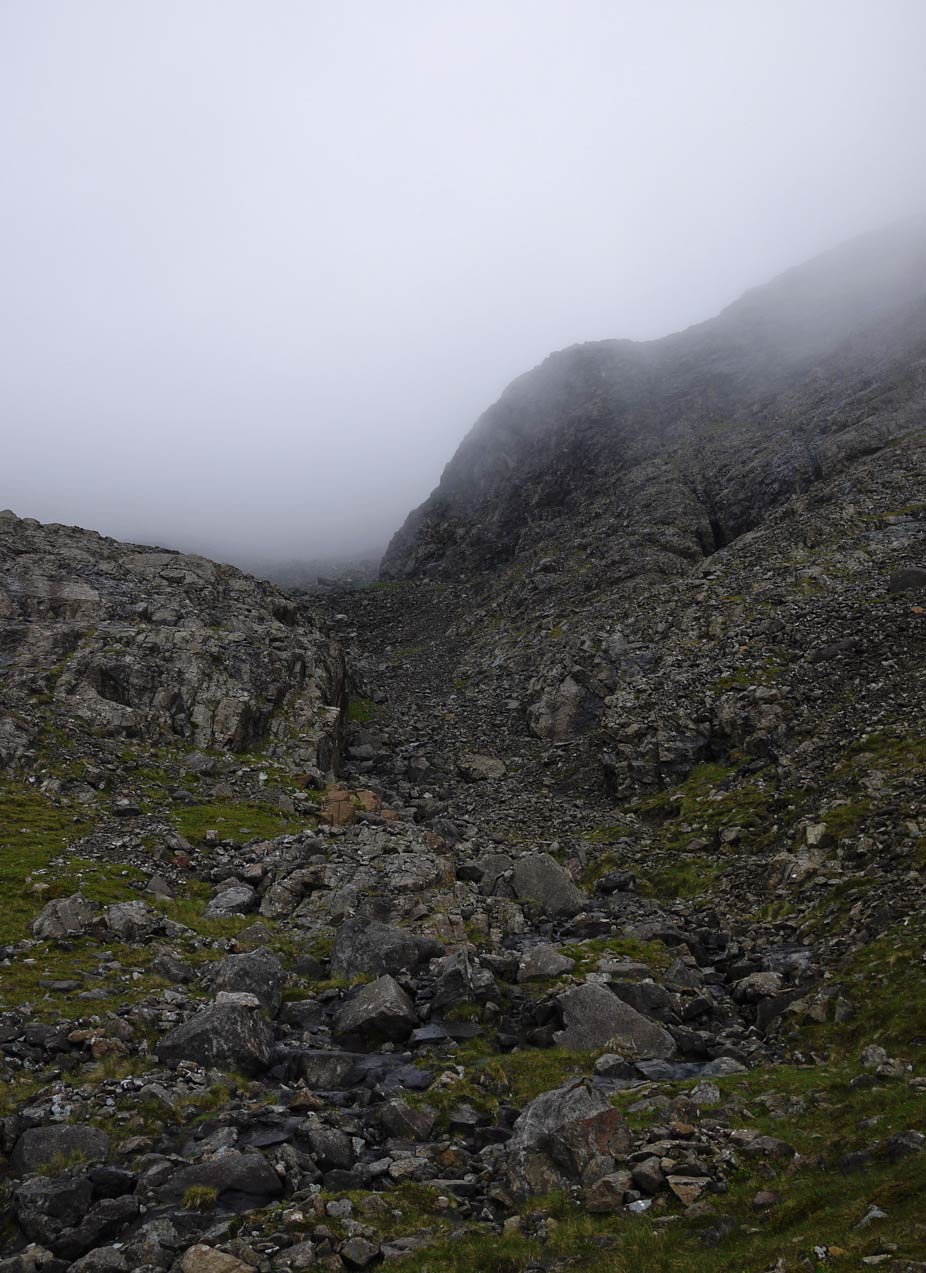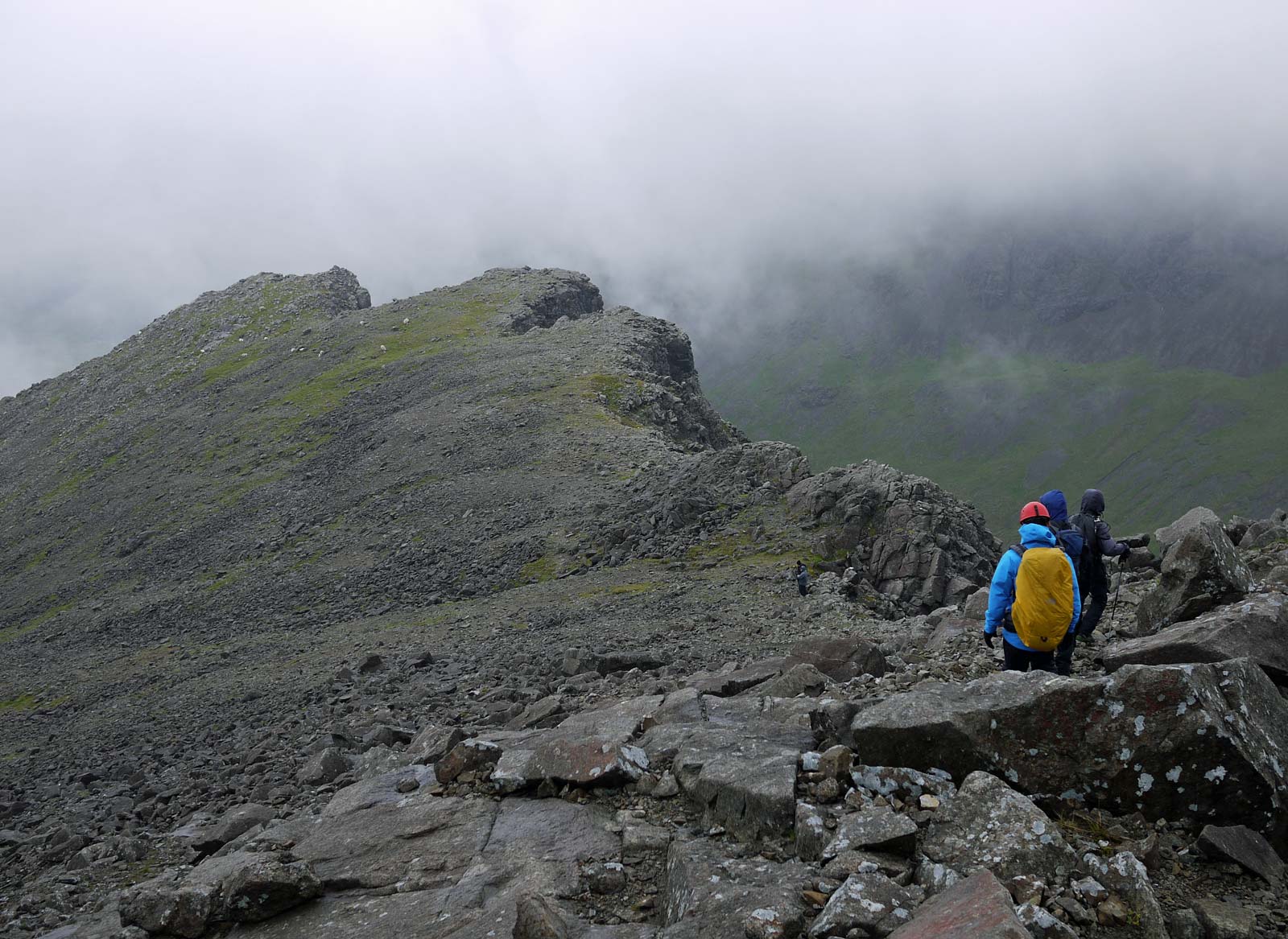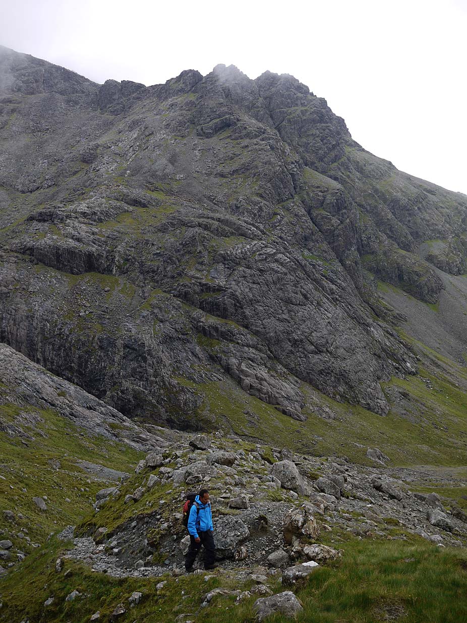 Approaching Sgurr a’ Mhadaidh below An Dorus gap