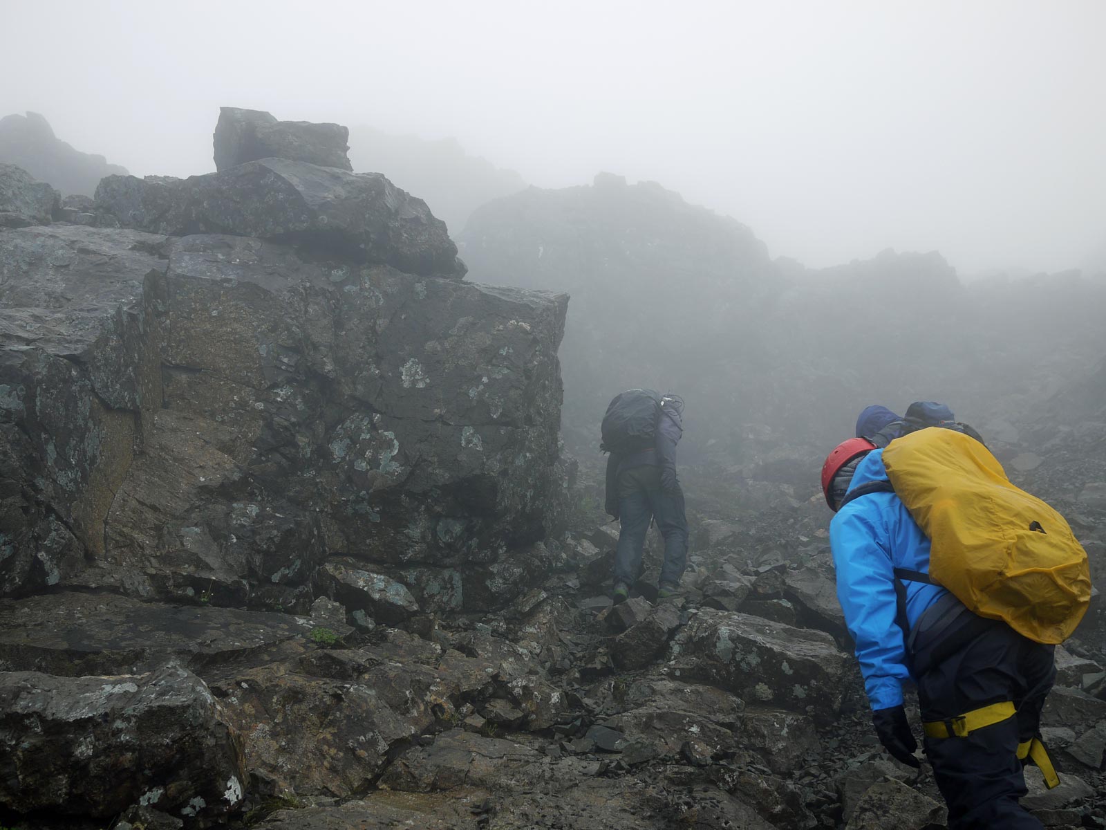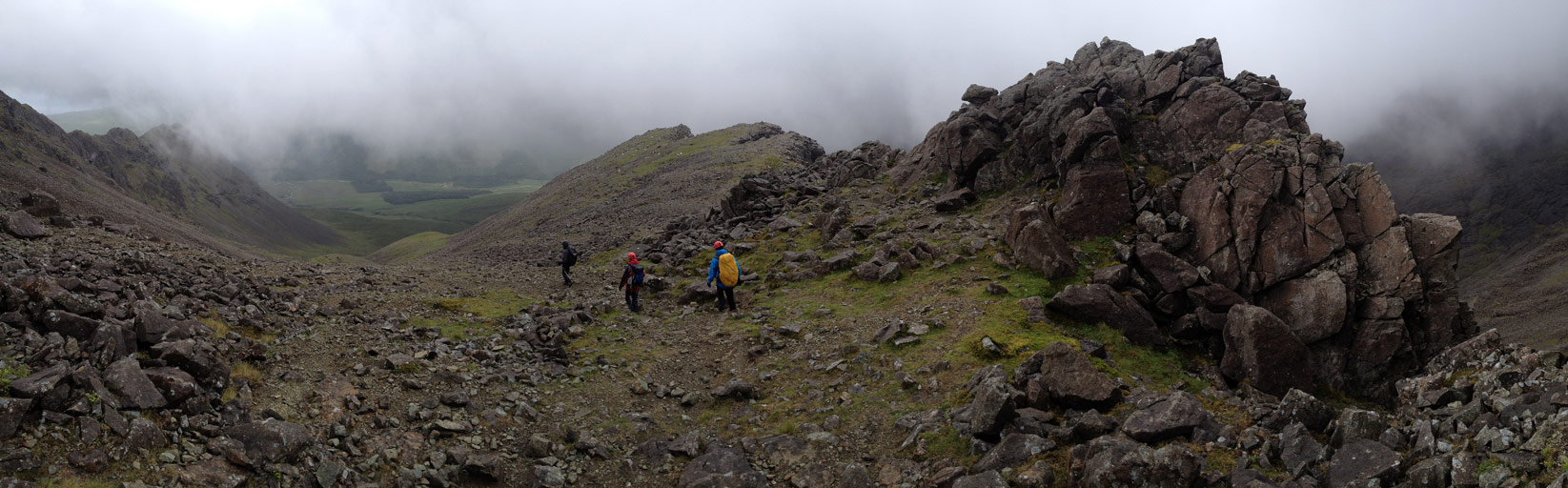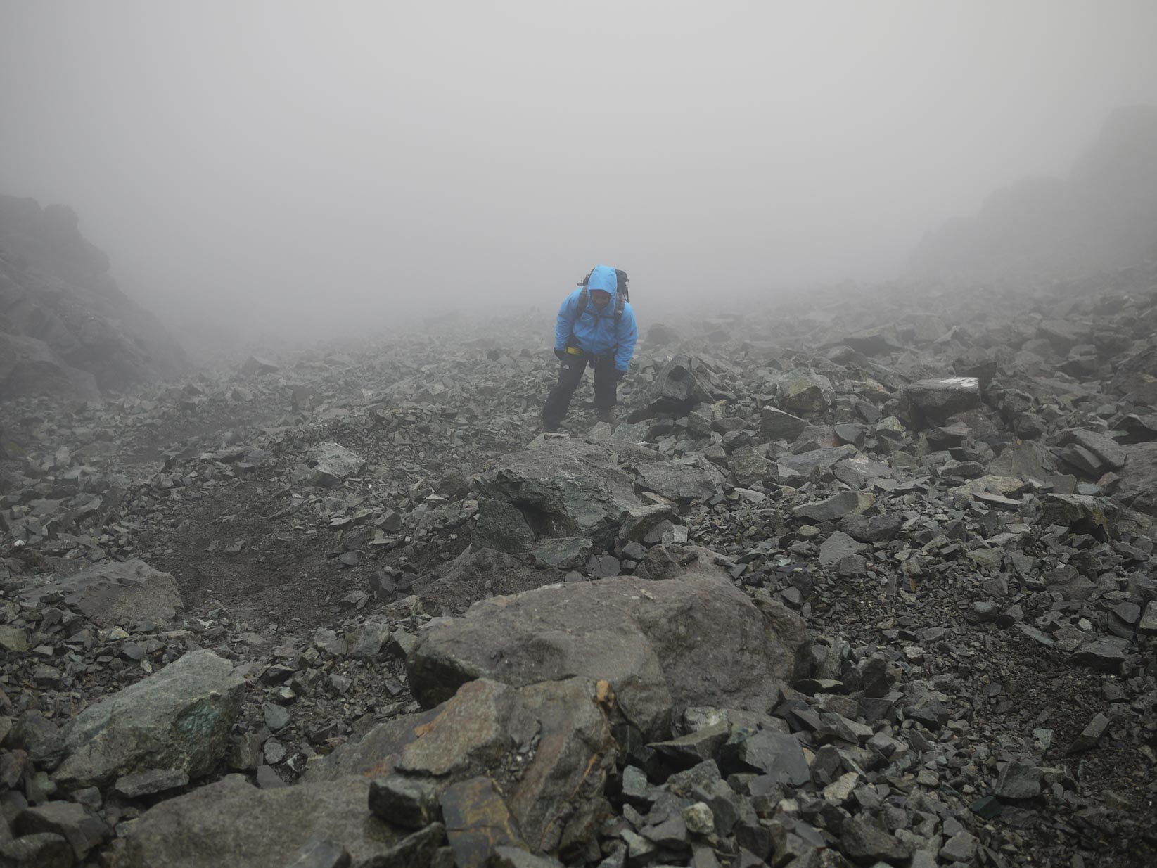 Approaching Sgurr a’ Mhadaidh below An Dorus gap