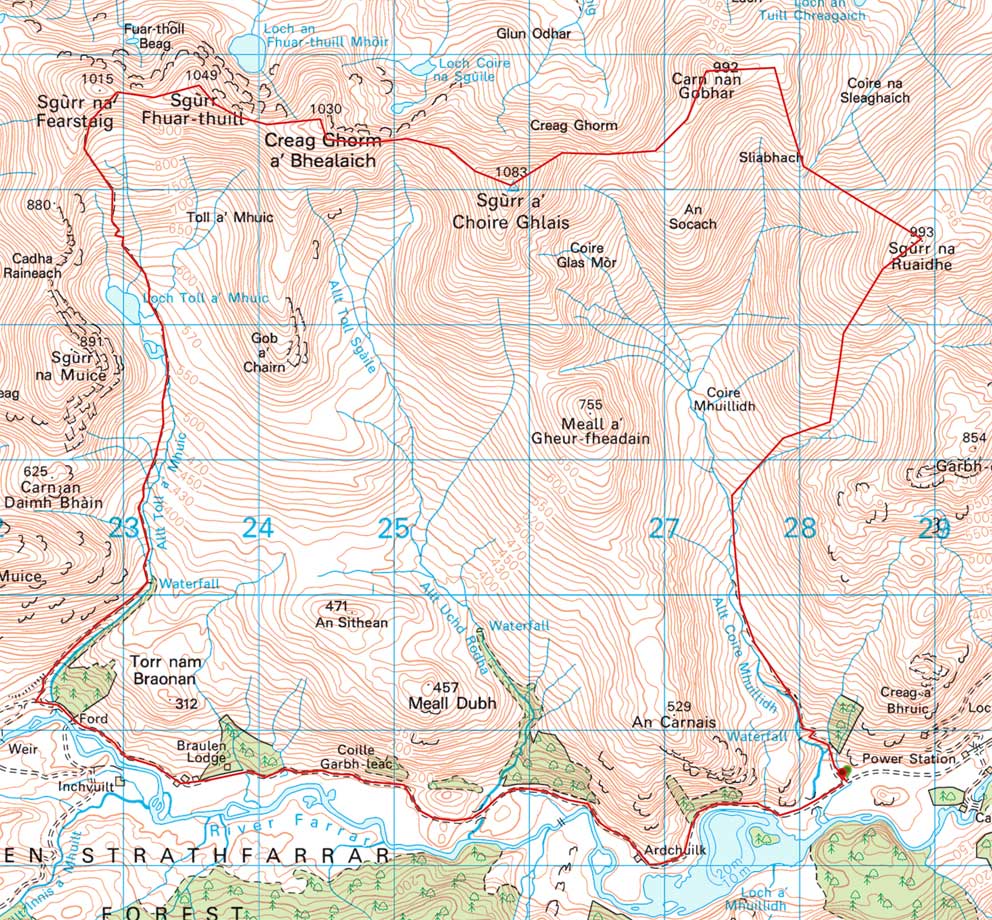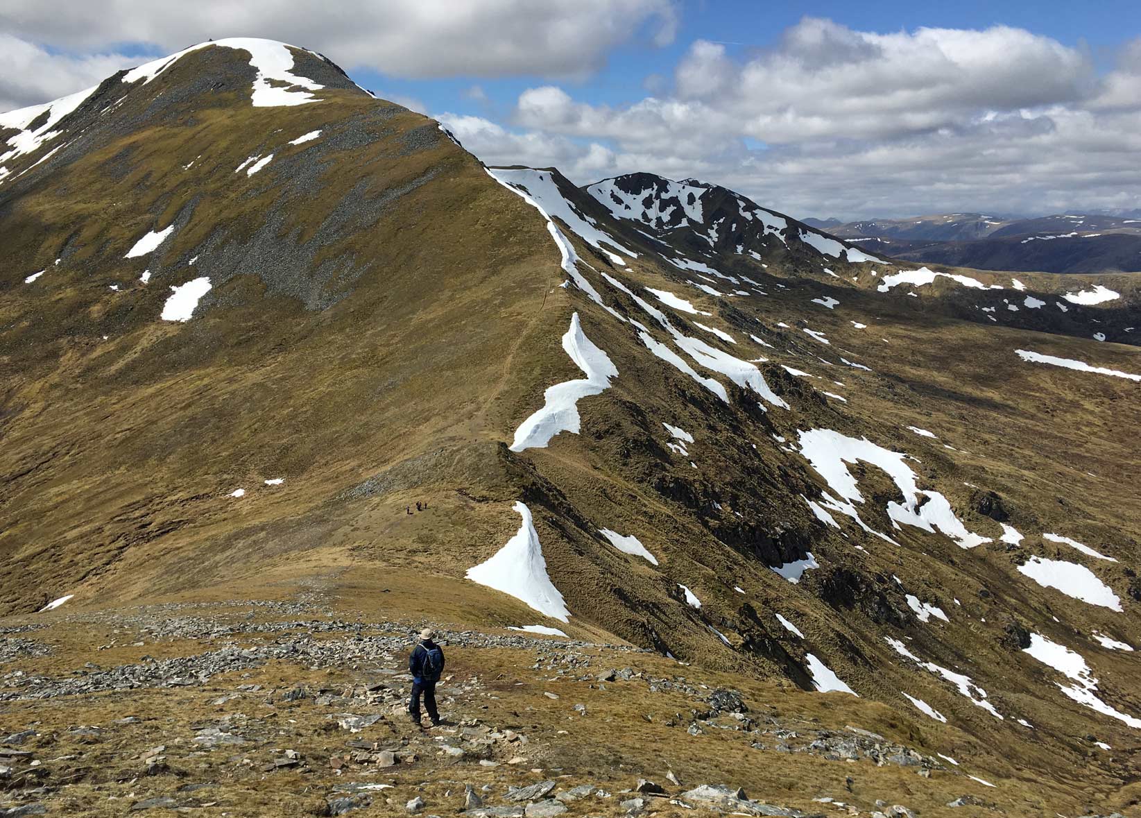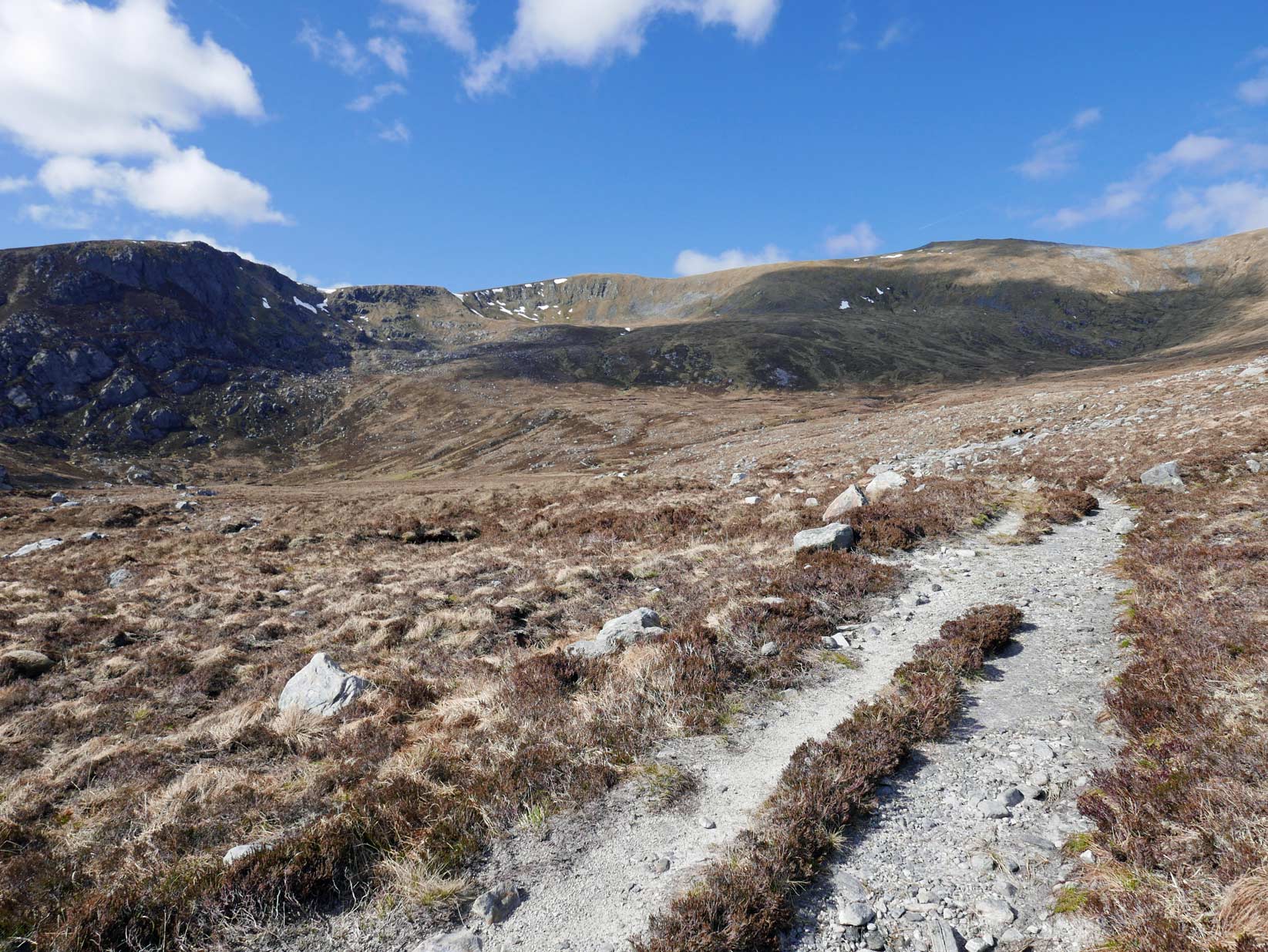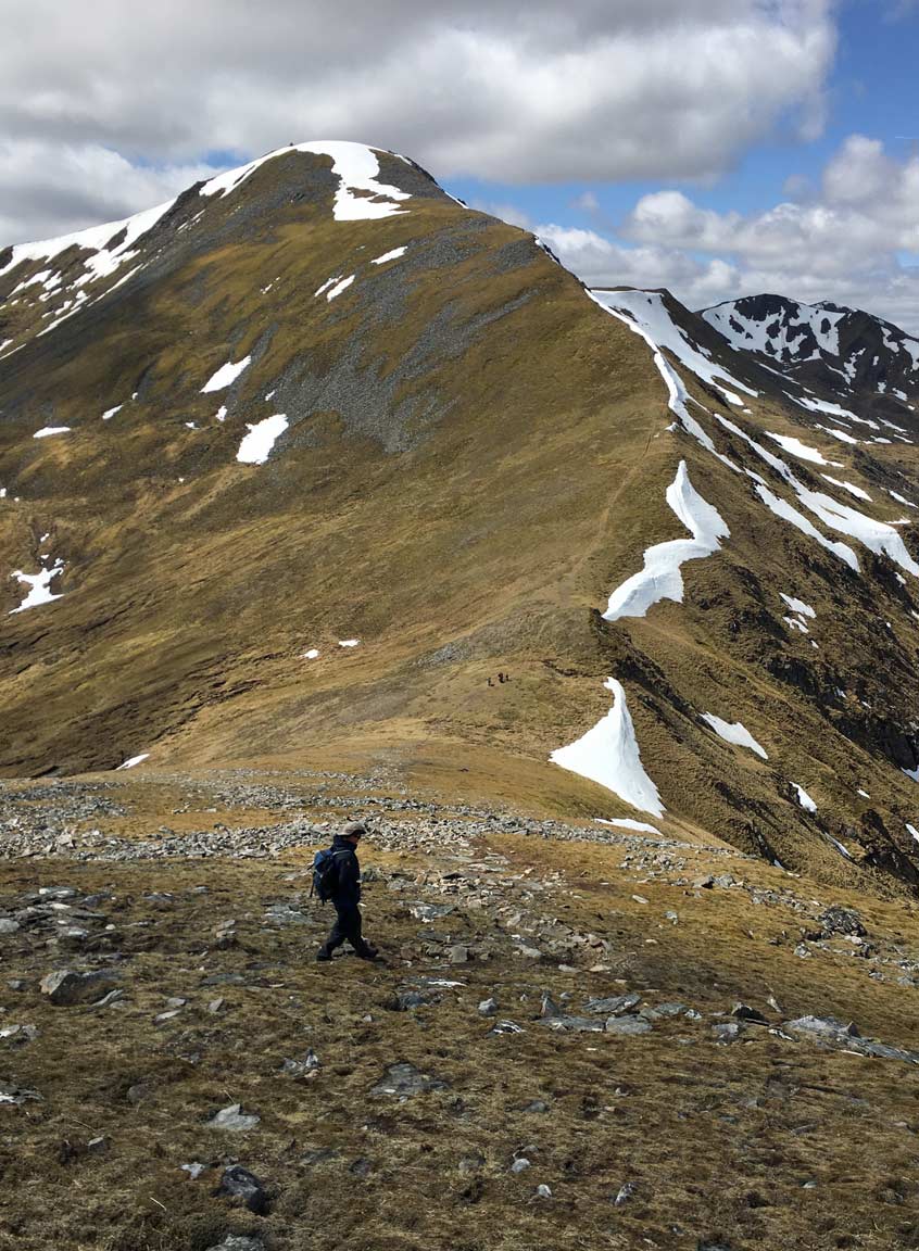 View back to Sgurr Fhuar-thuill, shortly before dropping south off the ridge to the path