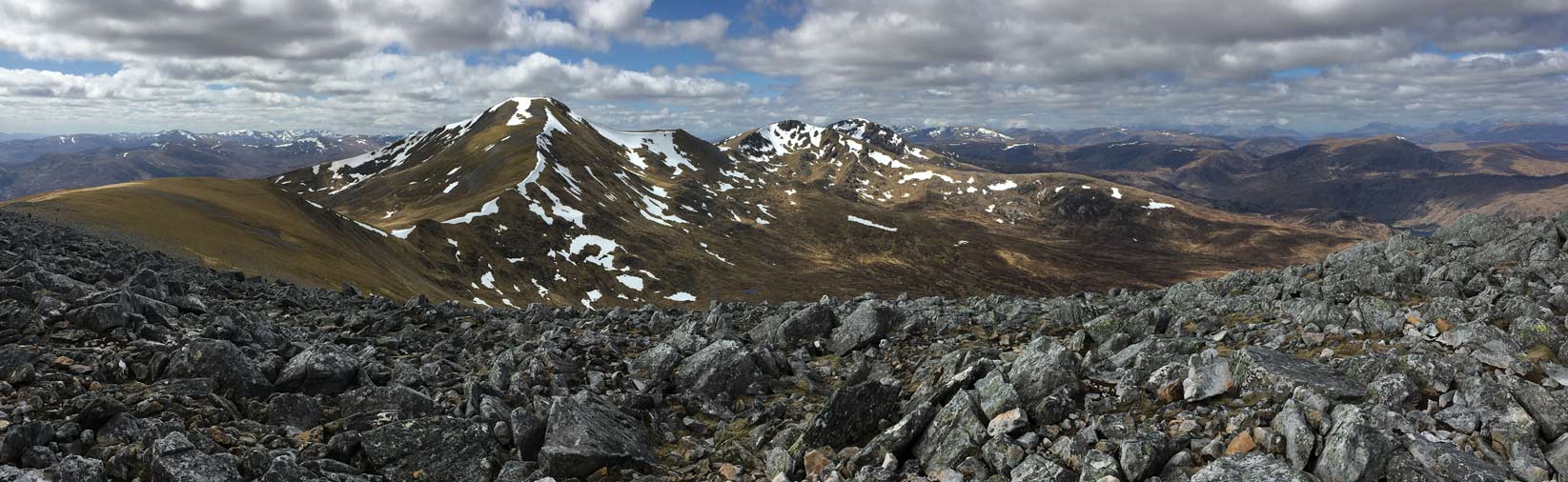 Carn nan Gobhar summit with view to Sgurr a’ Choire Ghlais, Creag Ghorm a’ Bhealaich and Sgurr Fhuar-thuill